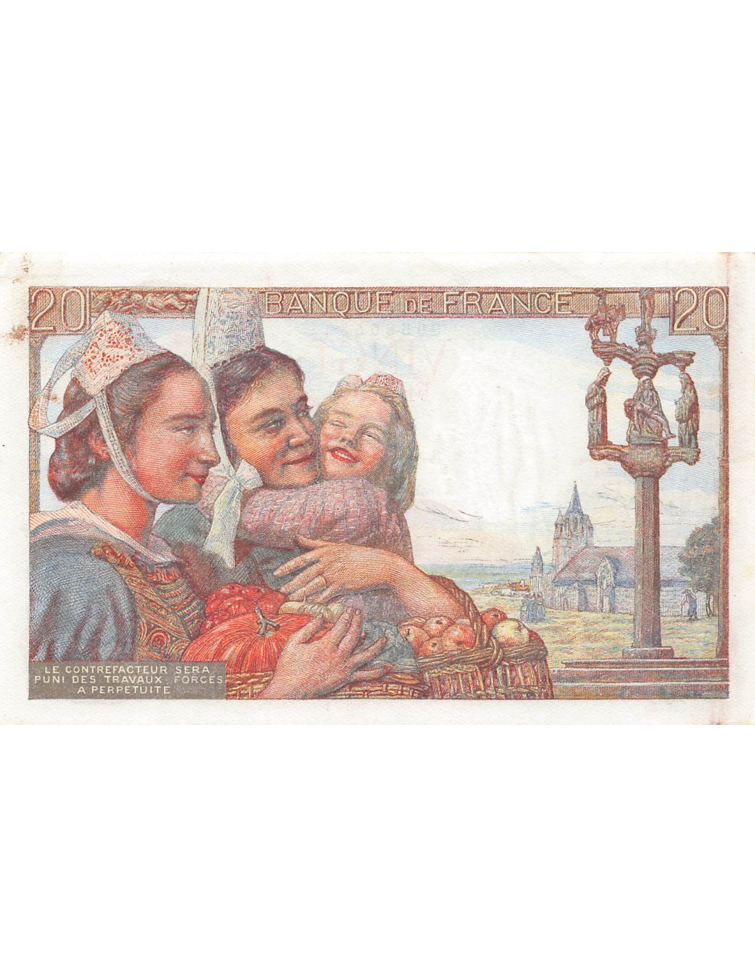 Vendu Billets du Monde France FRANCE PÊCHEUR - 20 FRANCS 28/01/1943 - SÉRIE D.66 SUFFREN sf_19967 10,00 € 2 trous d'épinglages, légers plis View