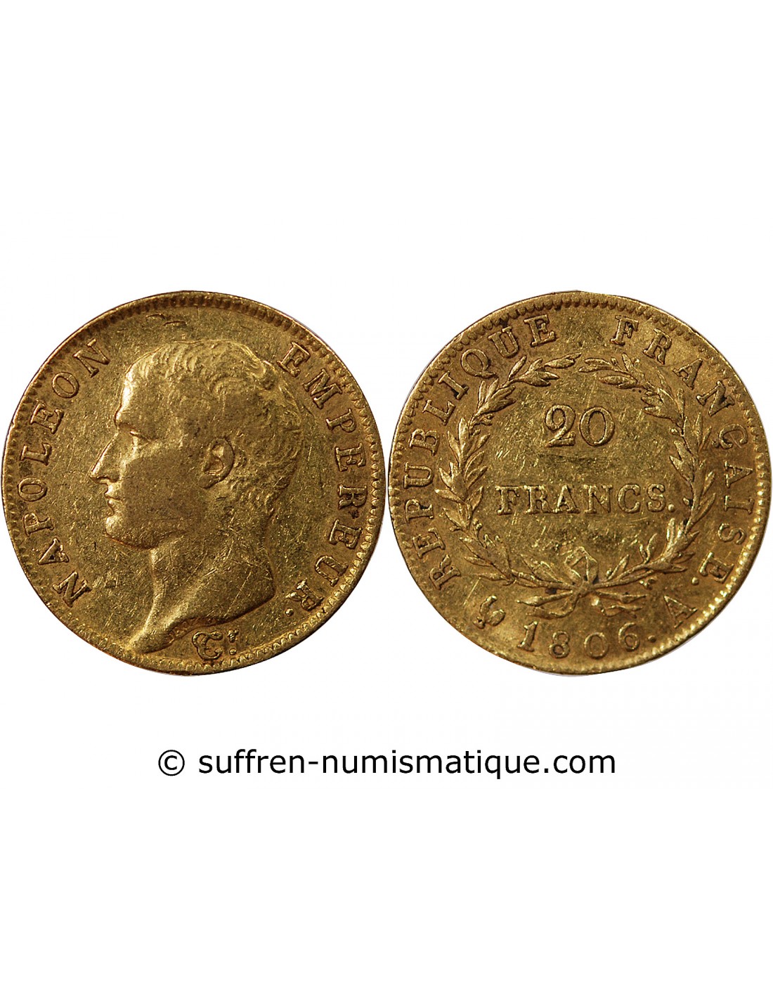 NAPOLEON Ier - 20 FRANCS OR 1806 A PARIS "Calendrier grégorien"