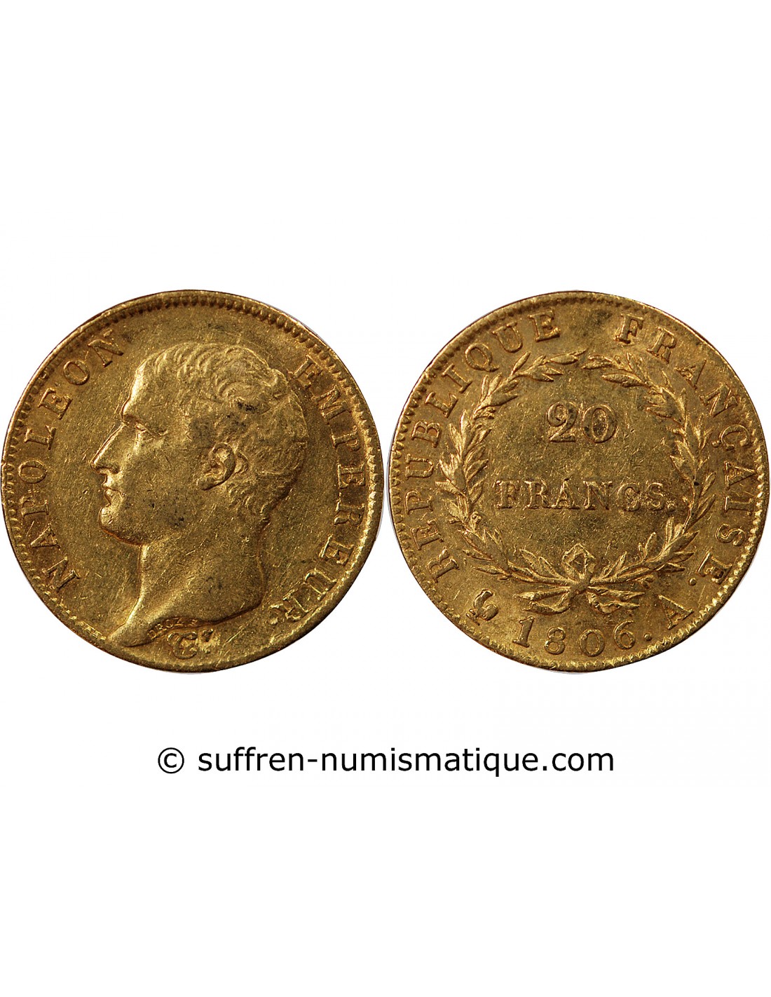 NAPOLEON Ier - 20 FRANCS OR 1806 A PARIS "Calendrier grégorien"