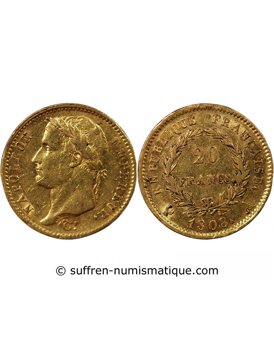 NAPOLÉON Ier - 20 FRANCS OR 1808 A PARIS Type République"