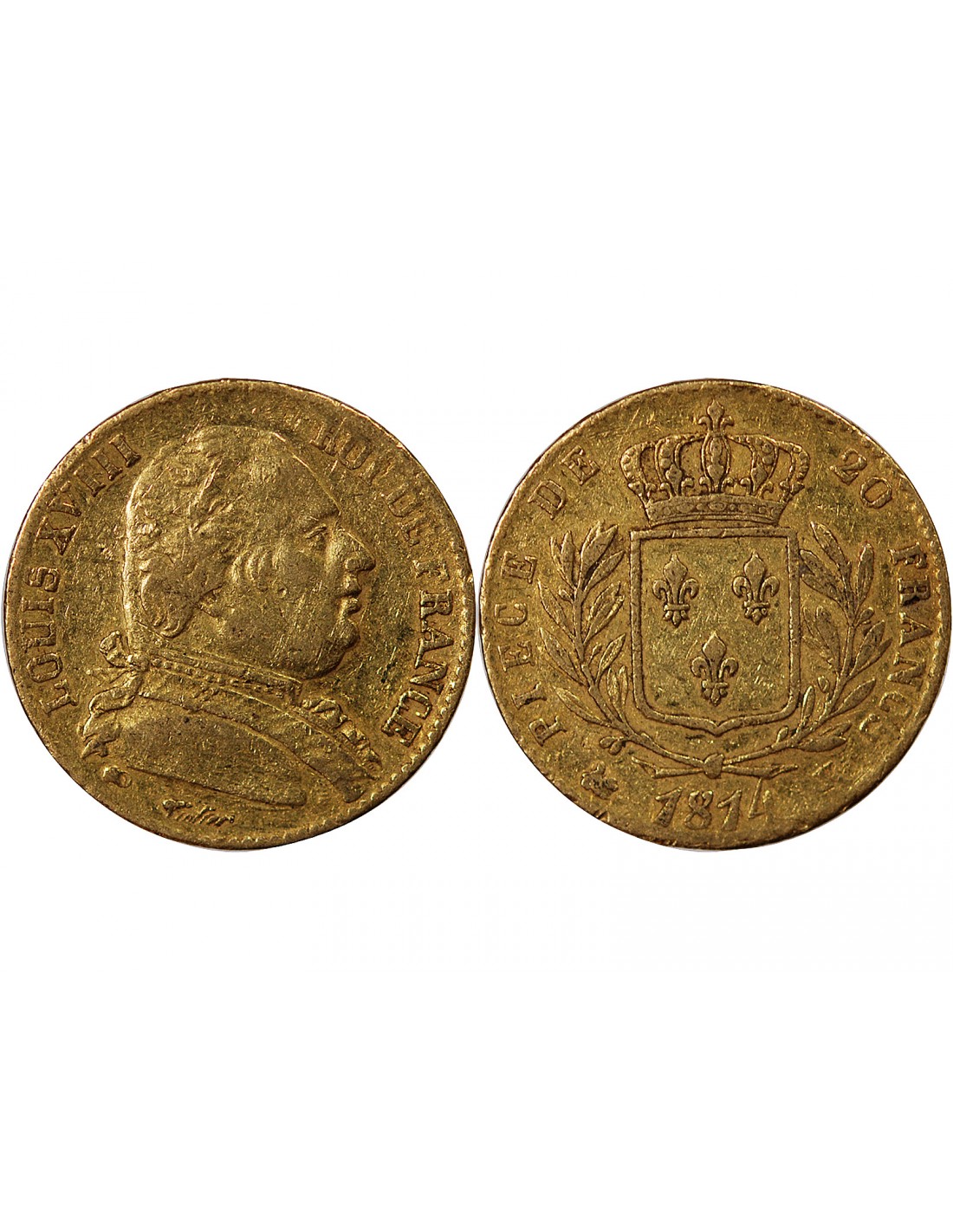LOUIS XVIII - 20 FRANCS OR 1814 K BORDEAUX