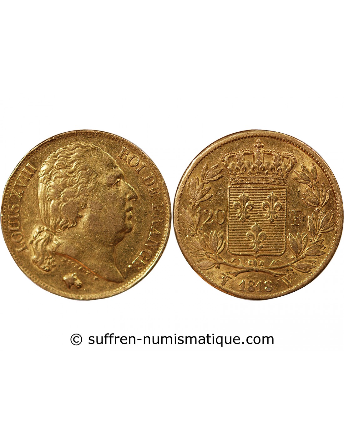 LOUIS XVIII - 20 FRANCS OR 1818 W LILLE