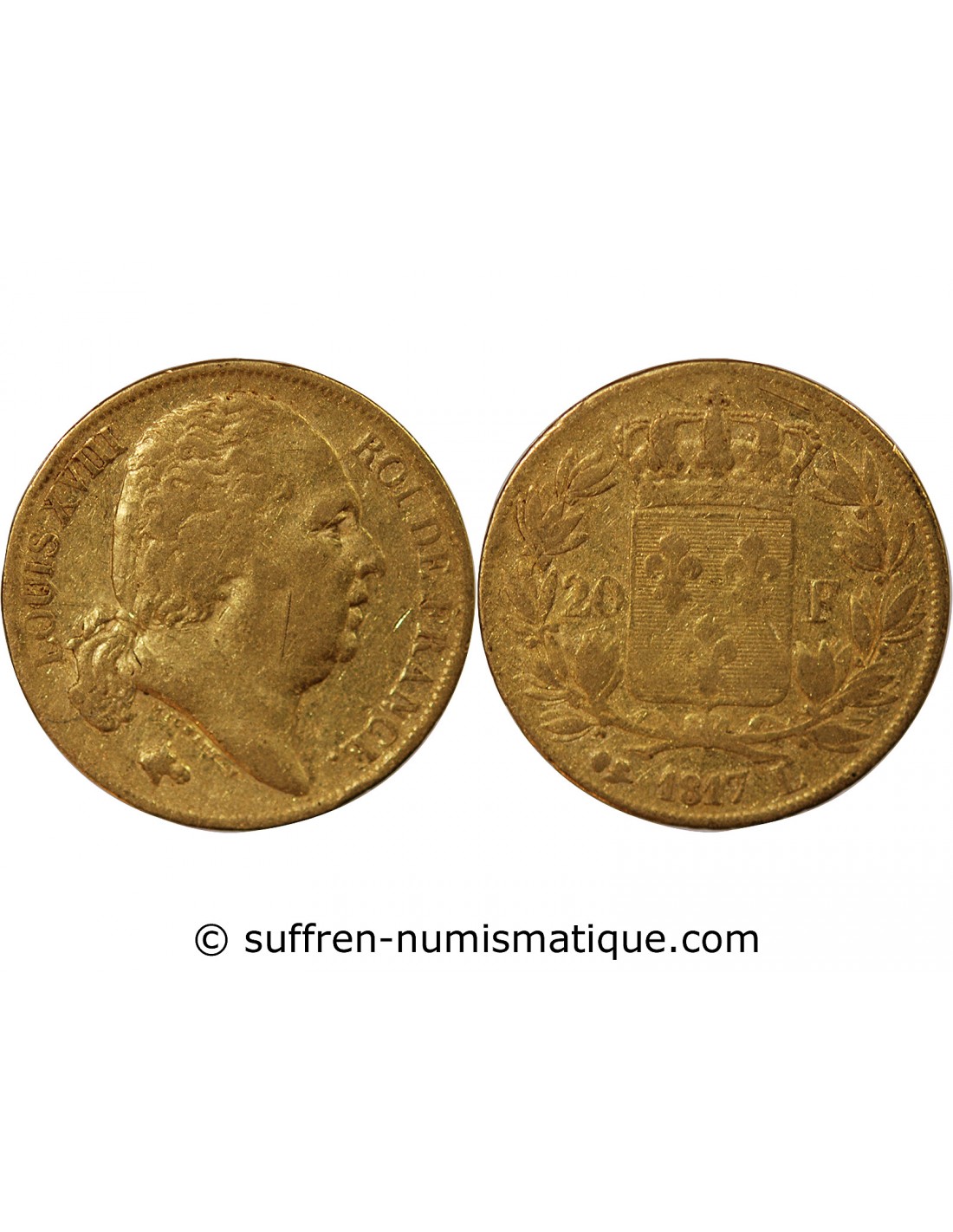 Louis XVIII 20 Francs Or 1817 L Bayonne