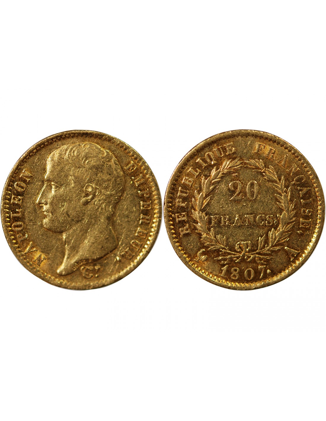 NAPOLEON Ier - 20 FRANCS OR, BALANCIER GENGEMBRE - 1807 A PARIS