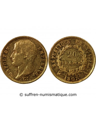 NAPOLEON Ier - 20 FRANCS OR, BALANCIER GENGEMBRE - 1807 A PARIS