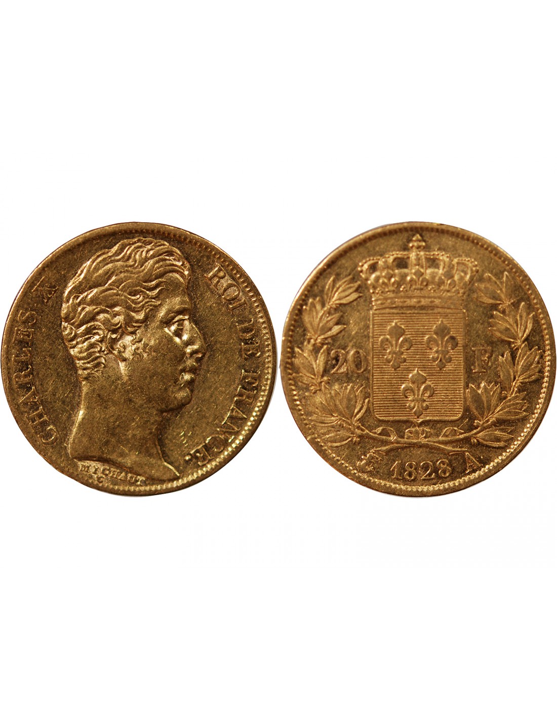 CHARLES X - 20 FRANCS OR 1828 A PARIS "5 Feuilles"