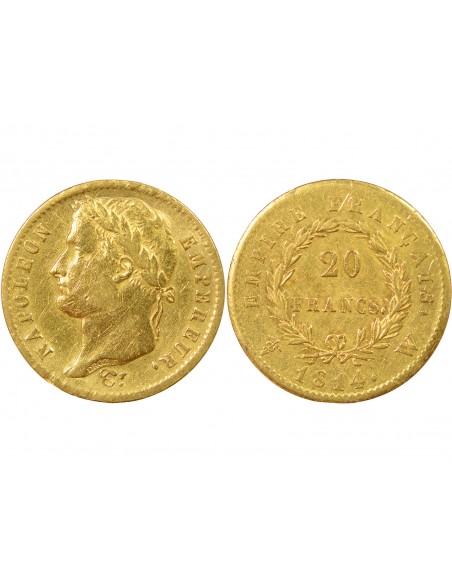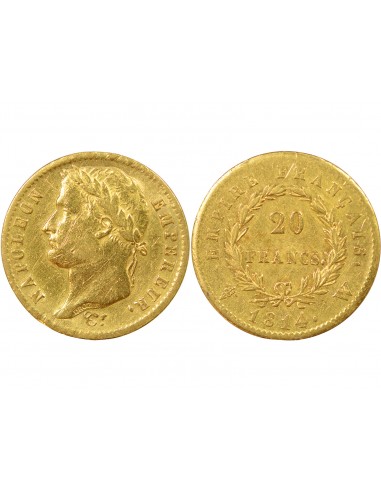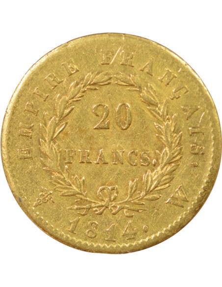 Napoléon Ier, Empereur de France, Roi d'Italie 20 francs Or 1814 W Lille
