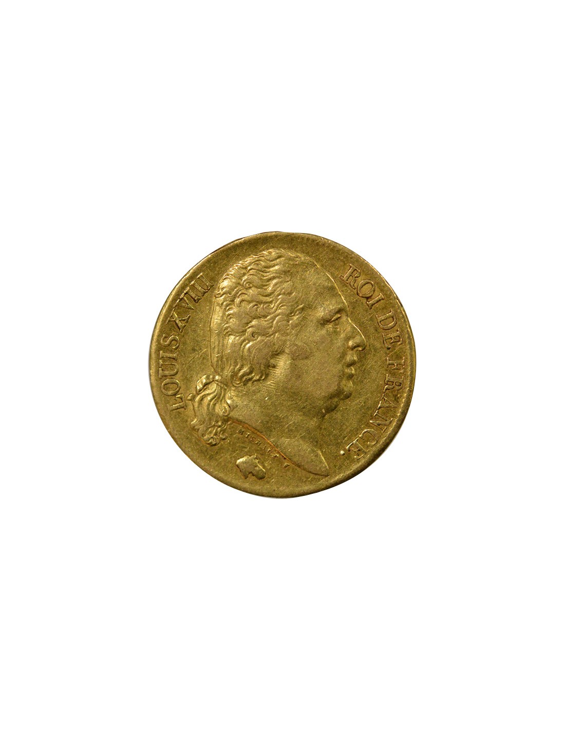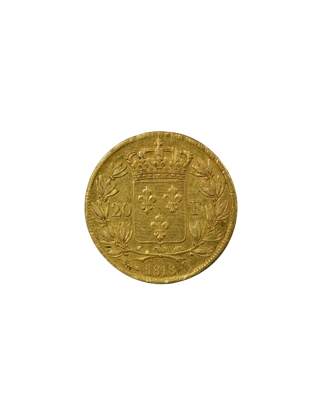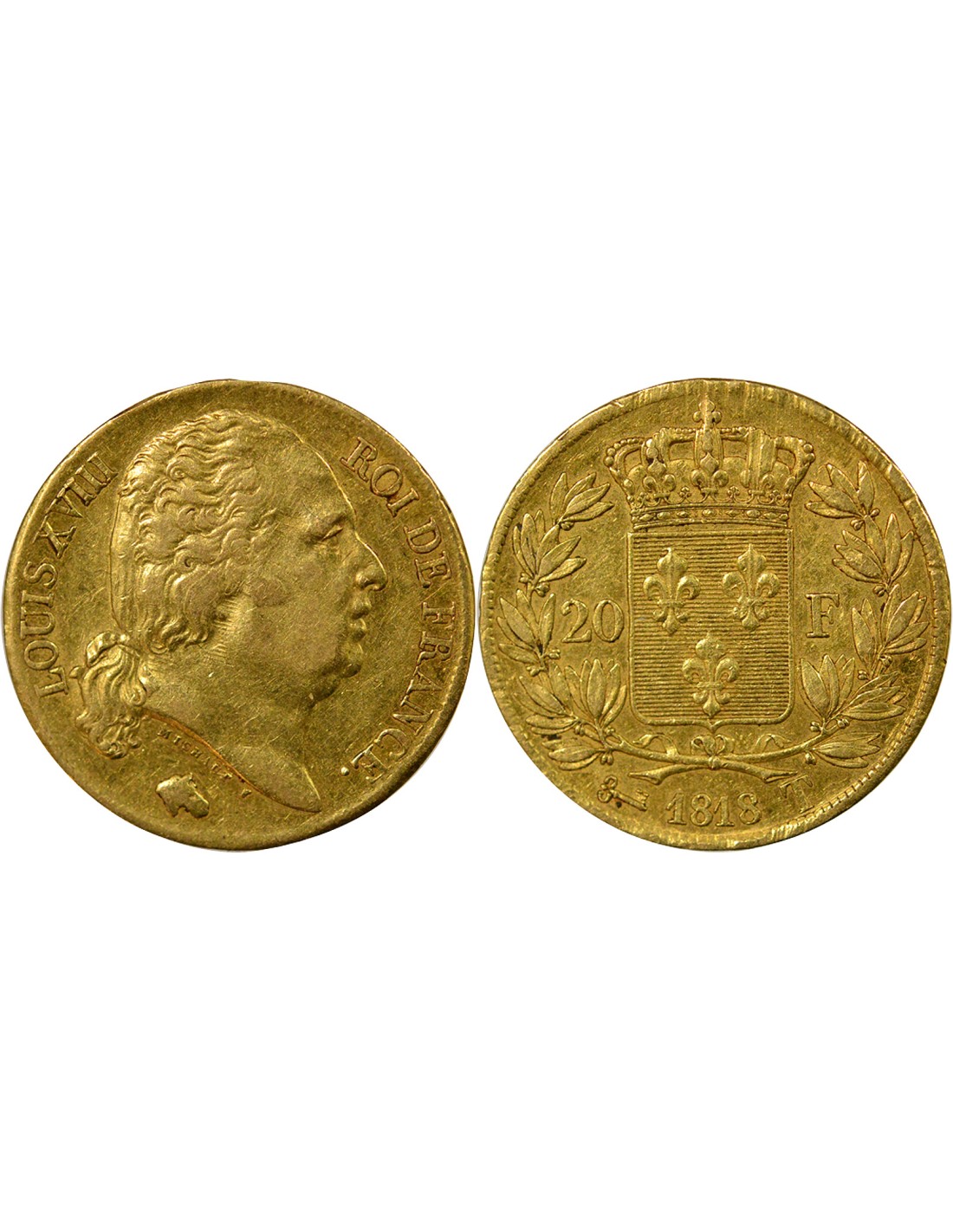 France Louis XVIII - 20 Francs Or, Tête nue - 1818 T Nantes