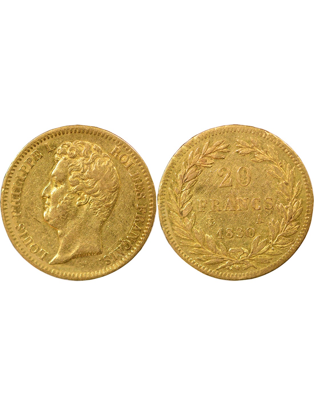 France Louis-Philippe I - 20 Francs Or, Tiolier, Tr. en relief - 1830 A Paris