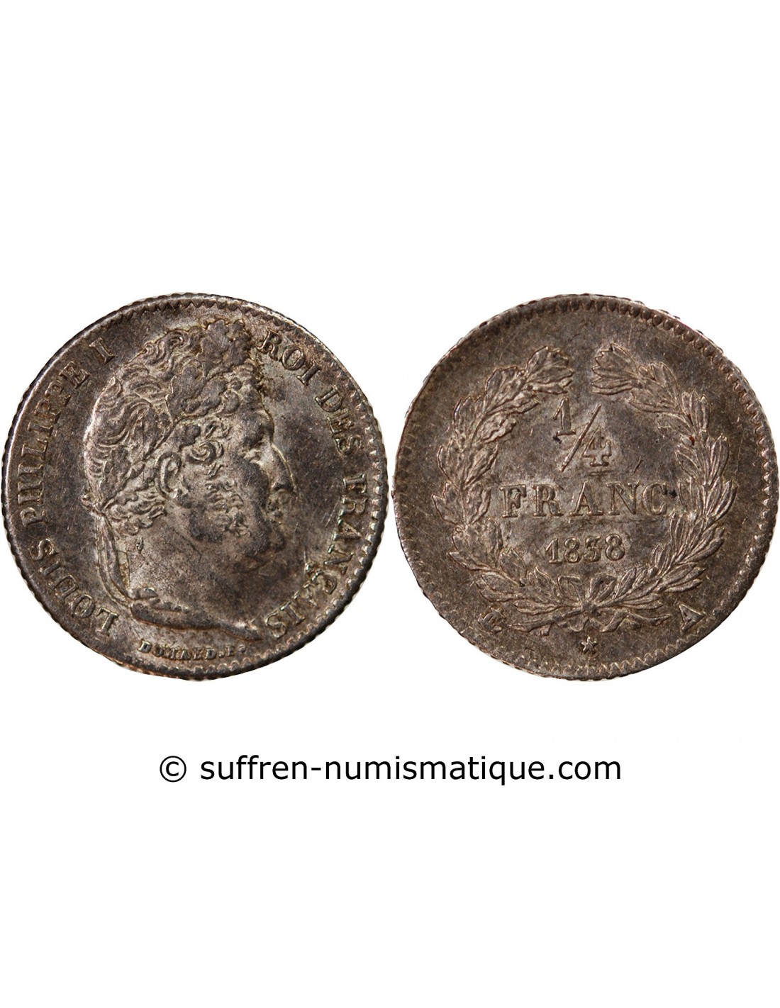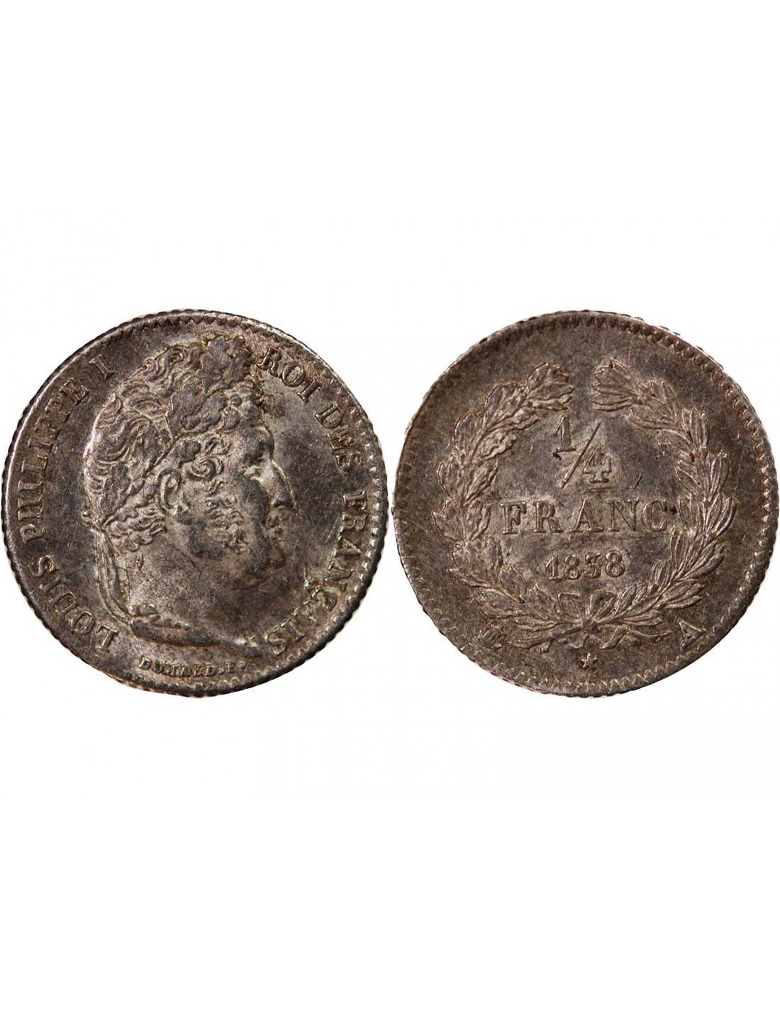LOUIS PHILIPPE - 1/4 FRANC ARGENT 1838 A PARIS