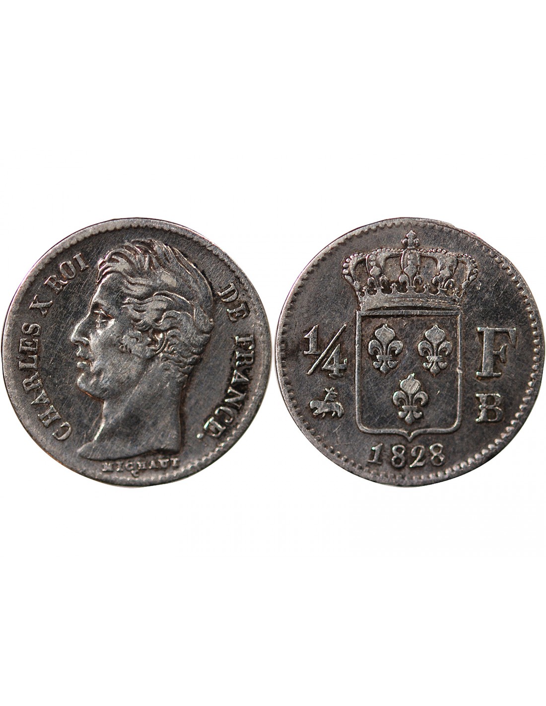 CHARLES X - 1/4 FRANC ARGENT 1828 B ROUEN