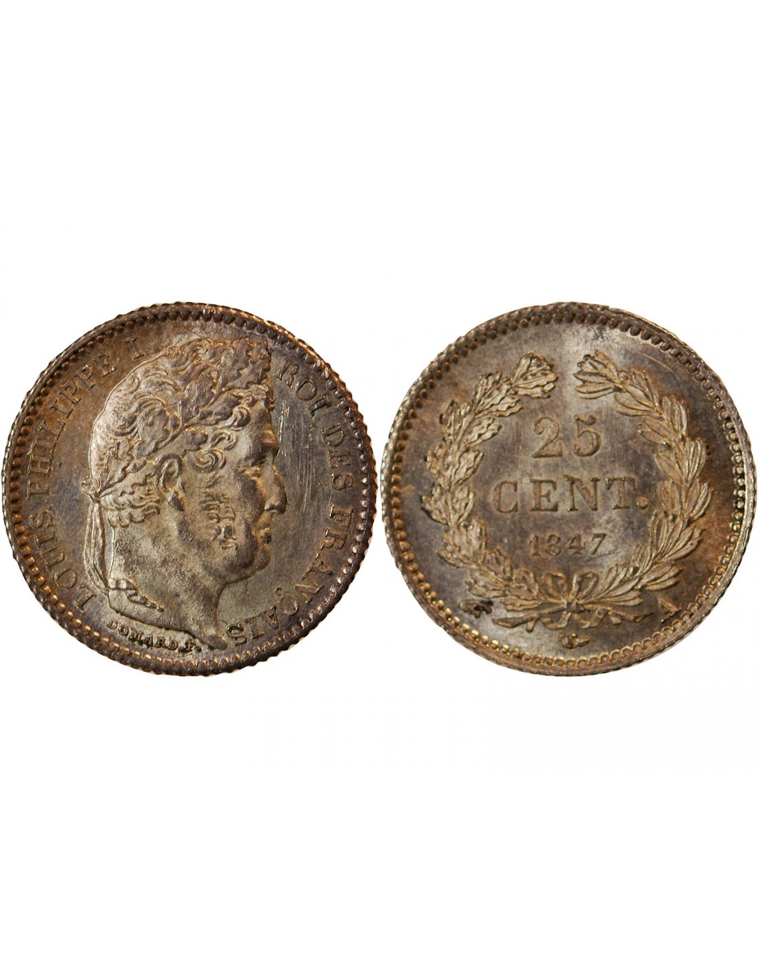 LOUIS PHILIPPE - 25 CENTIMES ARGENT 1847 A PARIS
