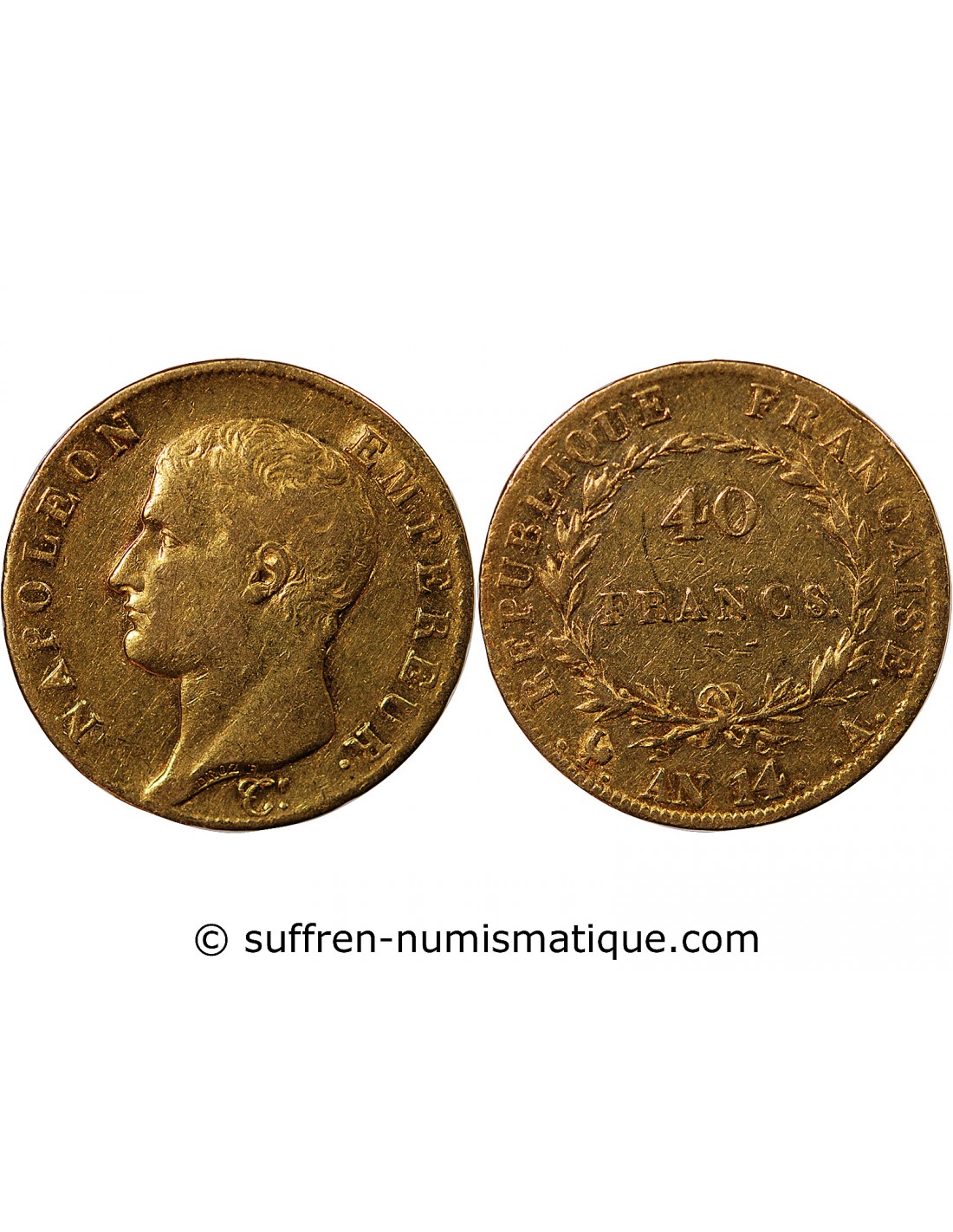 NAPOLEON Ier - 40 FRANCS OR Ier AN 14 A PARIS "calendrier révolutionnaire"