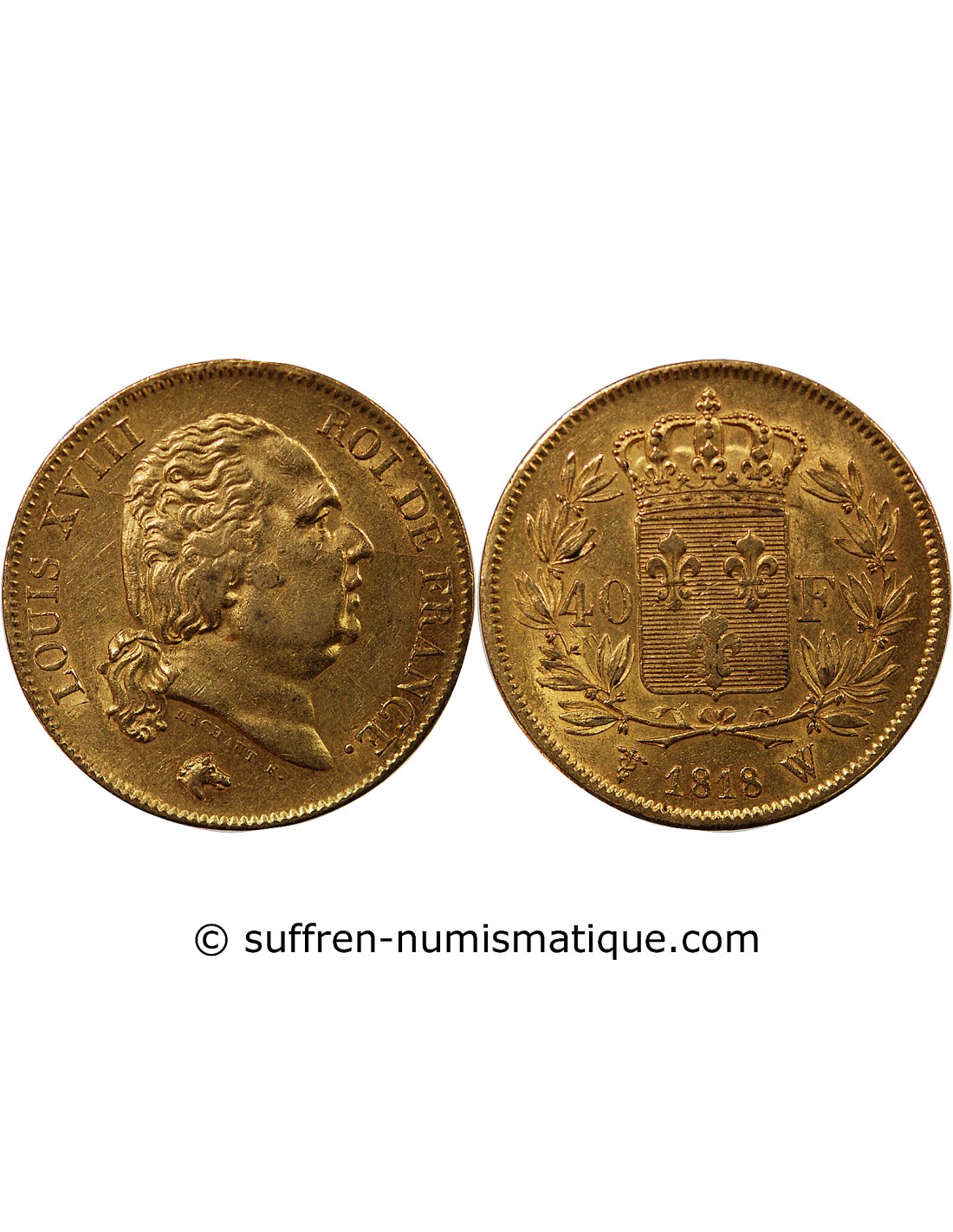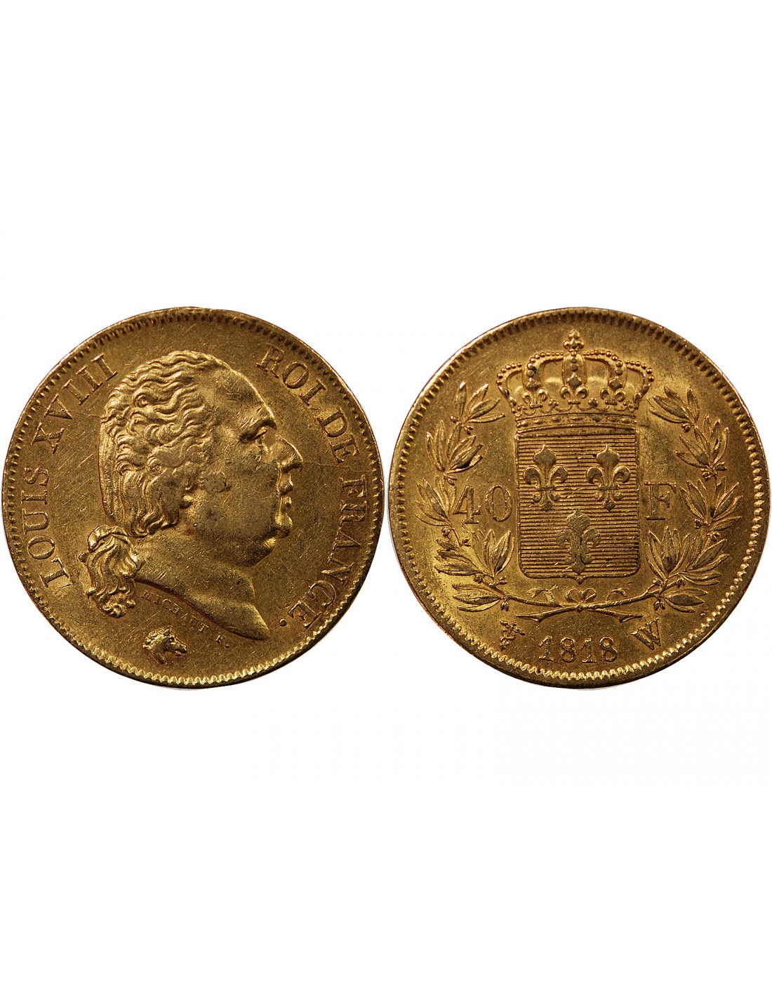 40 FRANCS OR LOUIS XVIII 1818 W LILLE
