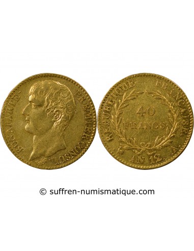 BONAPARTE 1er CONSUL - 40 FRANCS OR AN 12 A PARIS