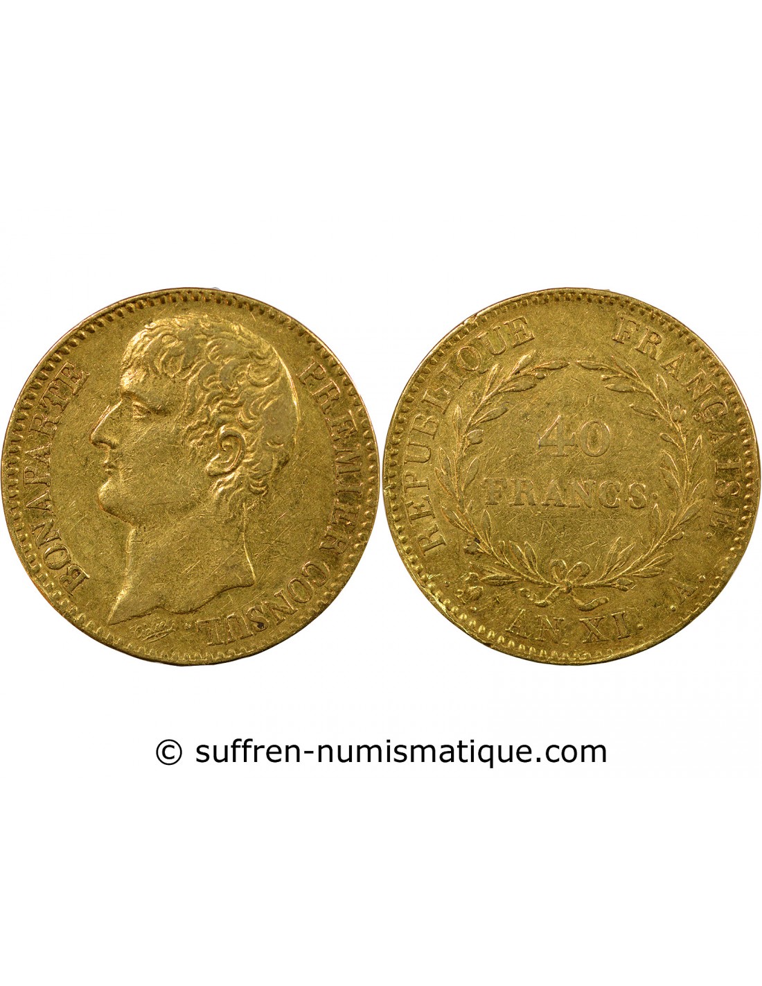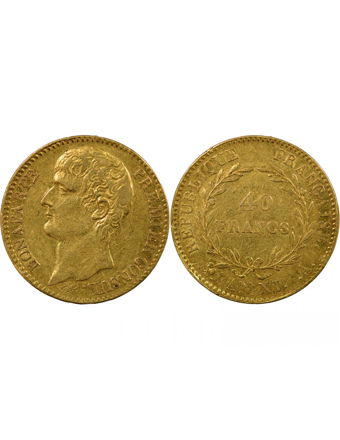 BONAPARTE Ier CONSUL - 40 FRANCS OR AN XI A PARIS