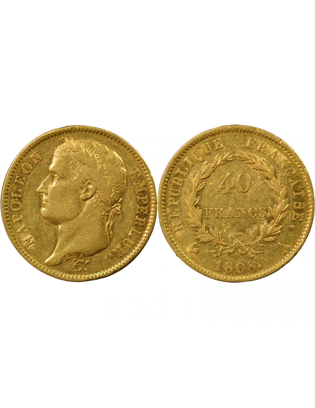 France Napoléon Ier - 40 Francs Or, Tête laurée, République - 1808 A Paris