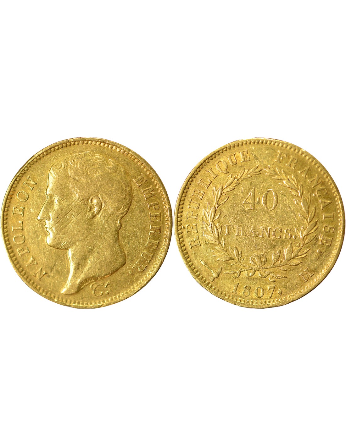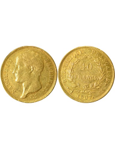 France Napoléon I - 40 Francs Or, Tête nue, au Balancier - 1807 M Toulouse