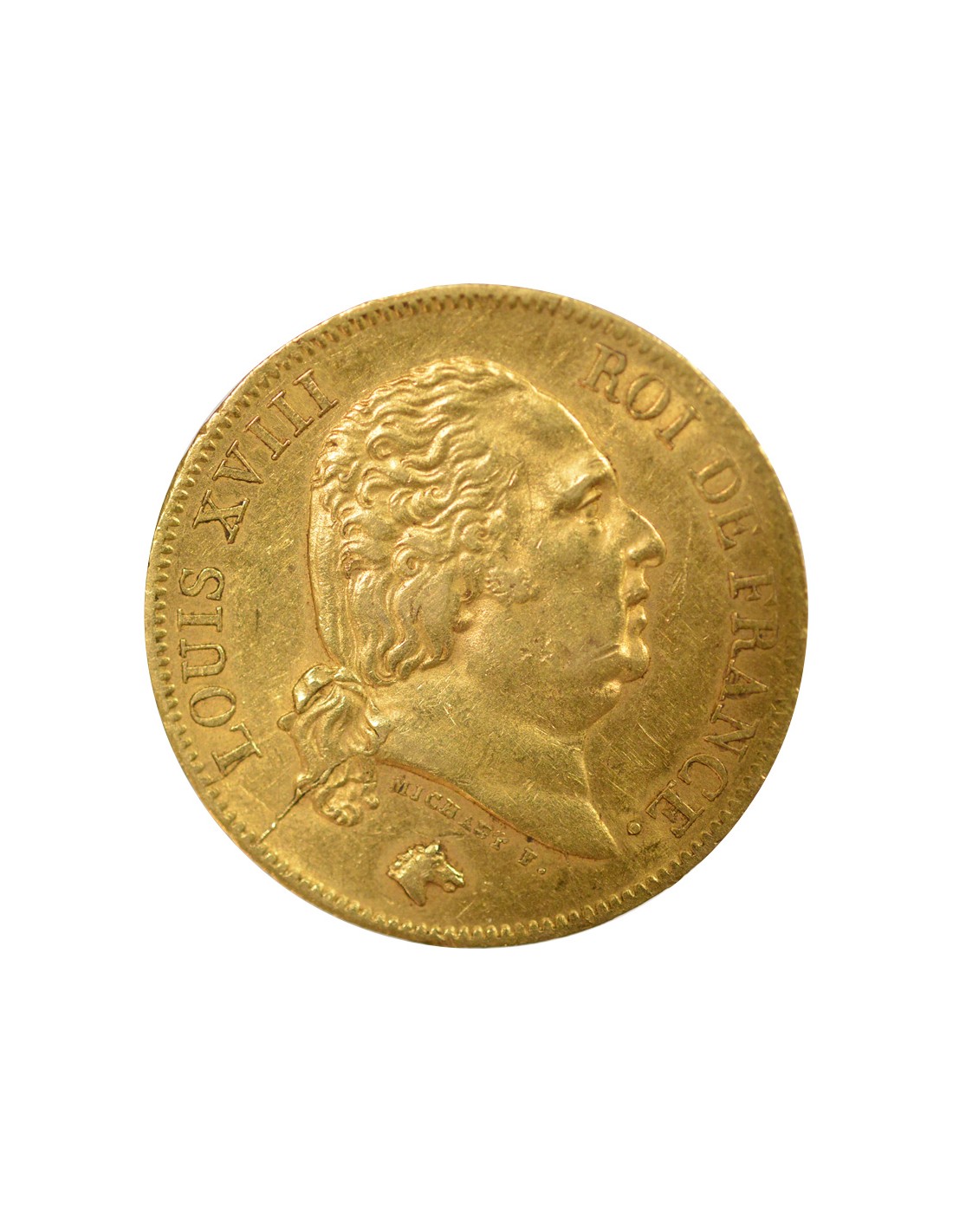 Vendu 40 Francs France LOUIS XVIII - 40 FRANCS OR 1818 W LILLE SUFFREN sf_22870 840,00 € LOUIS XVIII - 40 FRANCS OR 1818 W LILLE View