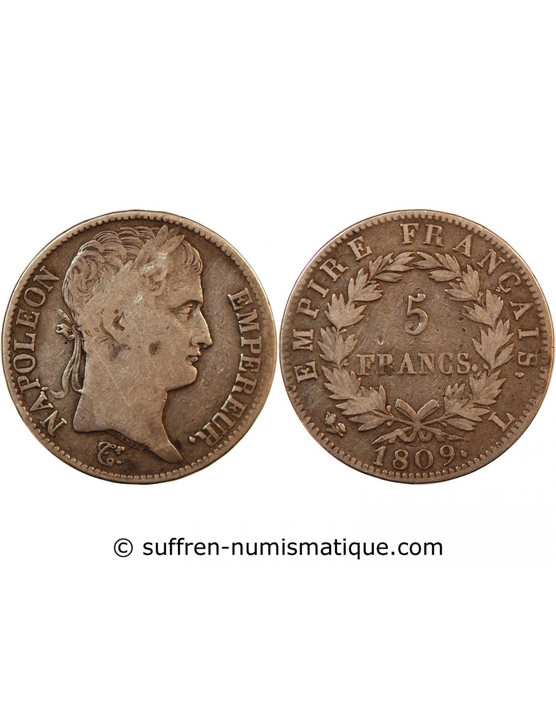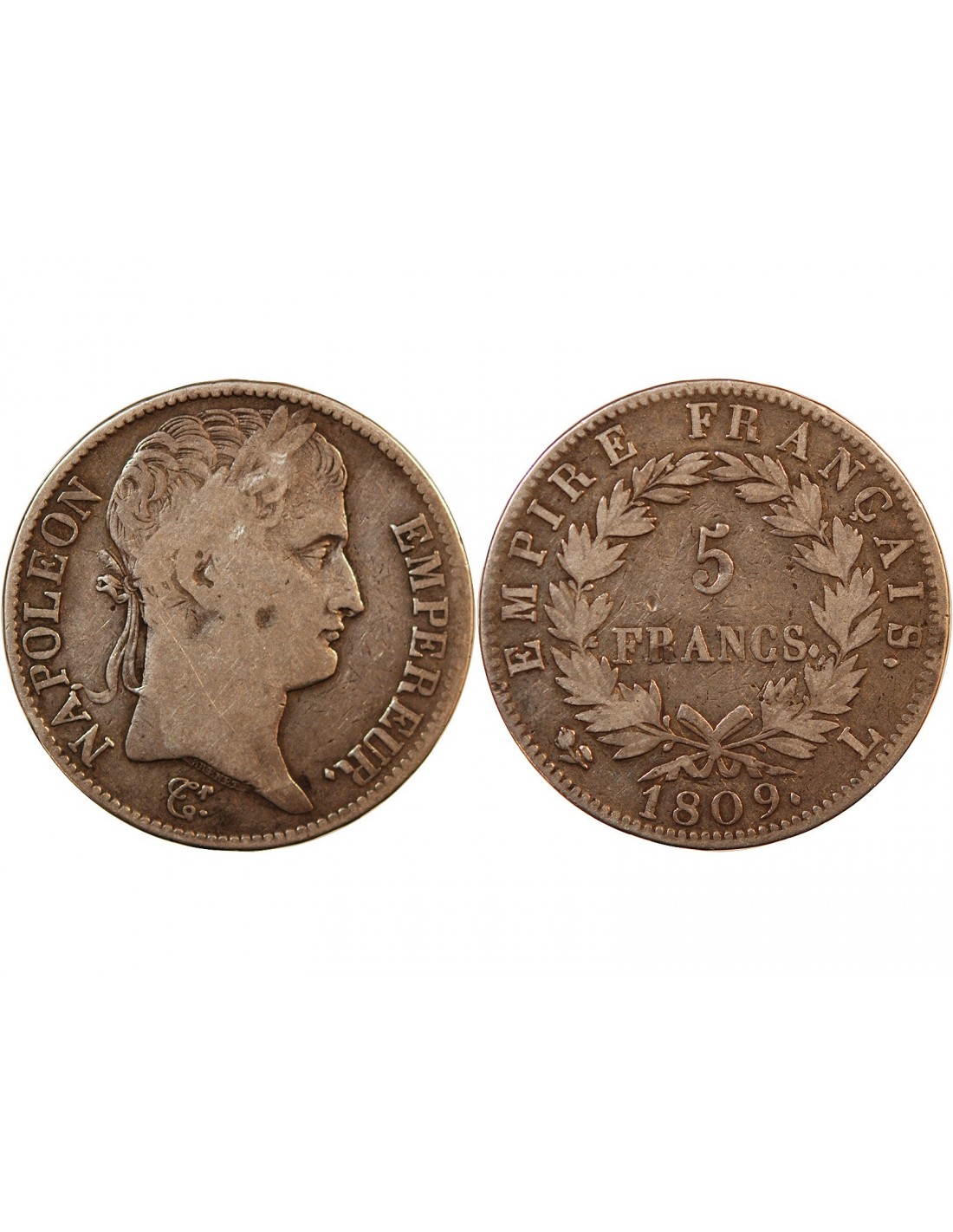 NAPOLEON Ier - 5 FRANCS ARGENT 1809 L BAYONNE