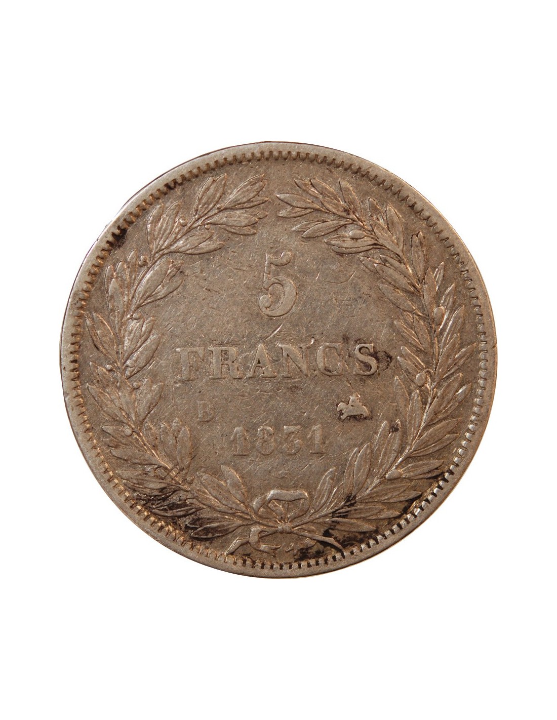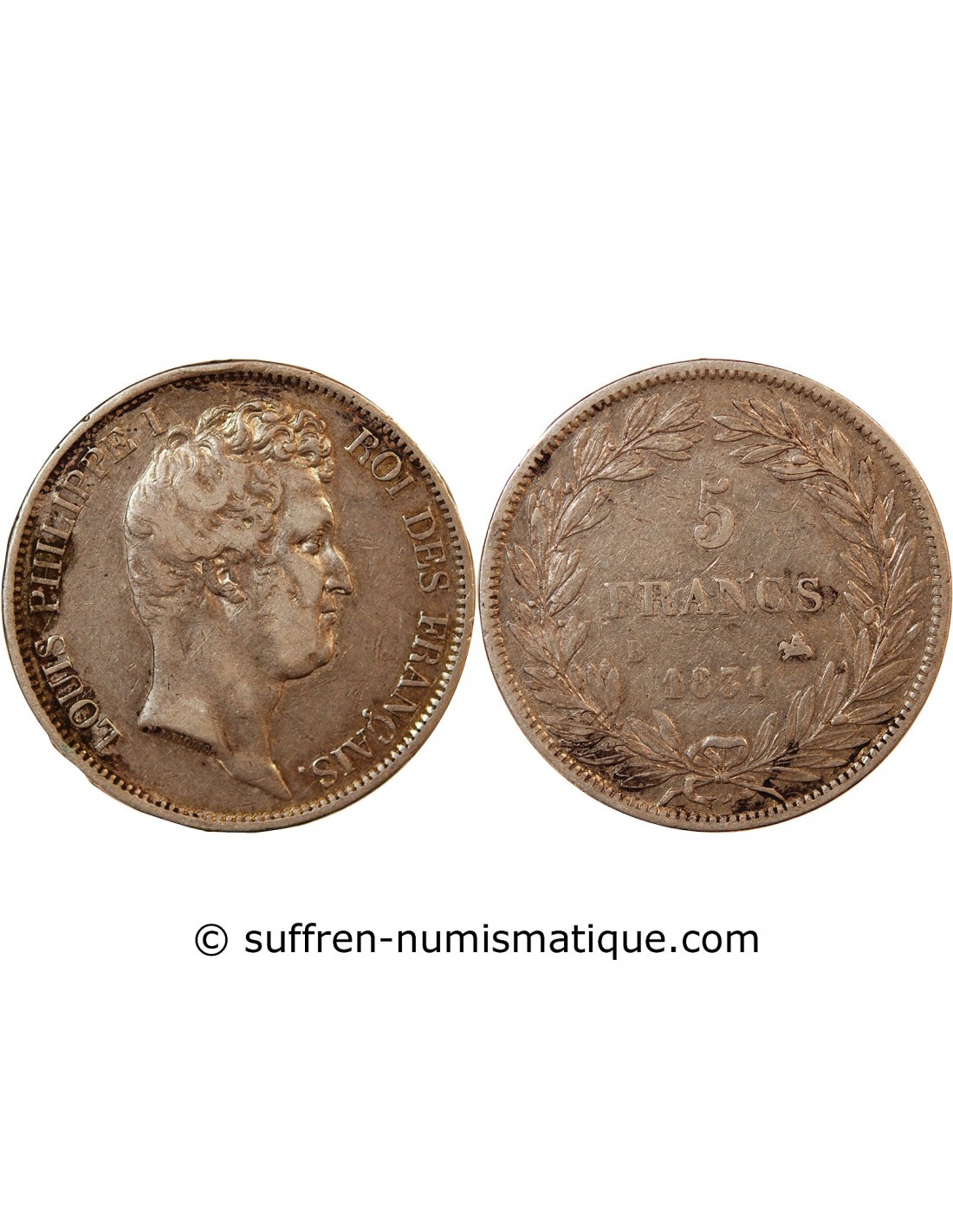 "France LOUIS PHILIPPE - 5 FRANCS ARGENT 1831 B ROUEN "Type Tiolier, Tr relief"