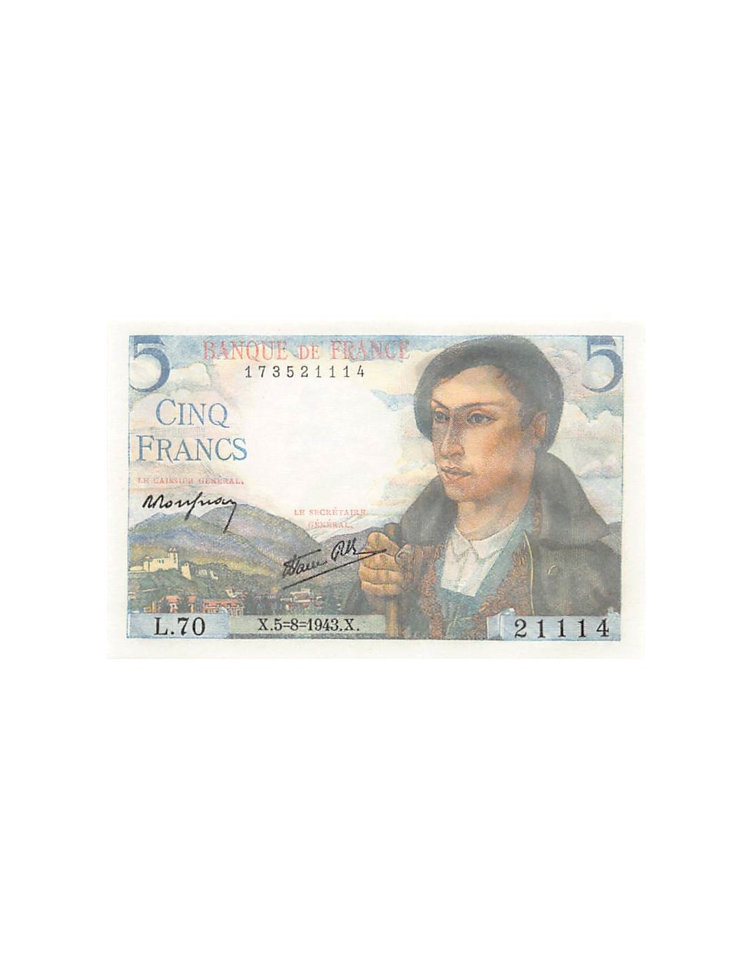 FRANCE - 5 FRANCS BERGER 05/08/1943 - SÉRIE L.70