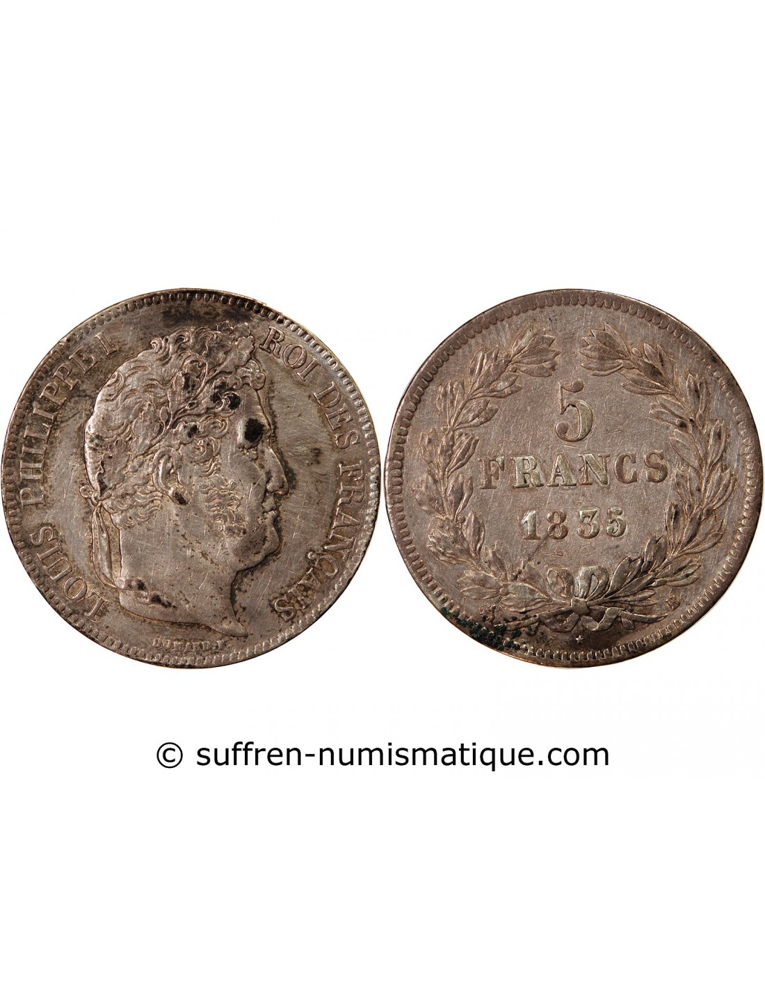 LOUIS PHILIPPE - 5 FRANCS ARGENT 1835 B ROUEN "Type Domard, Tr relief"