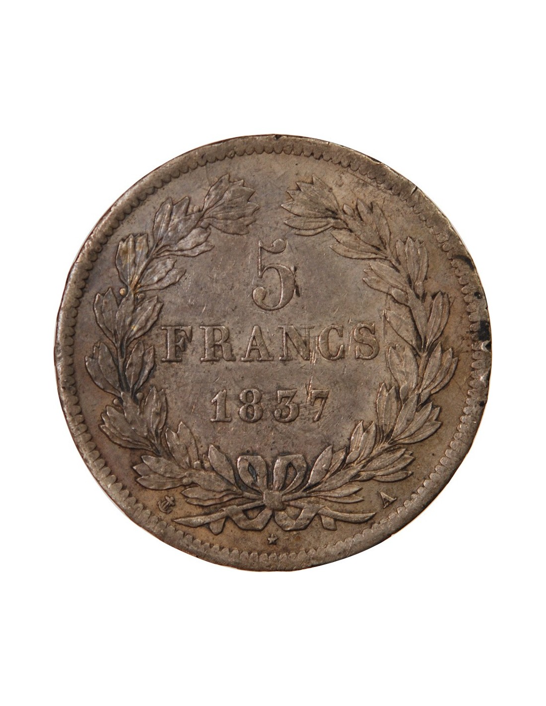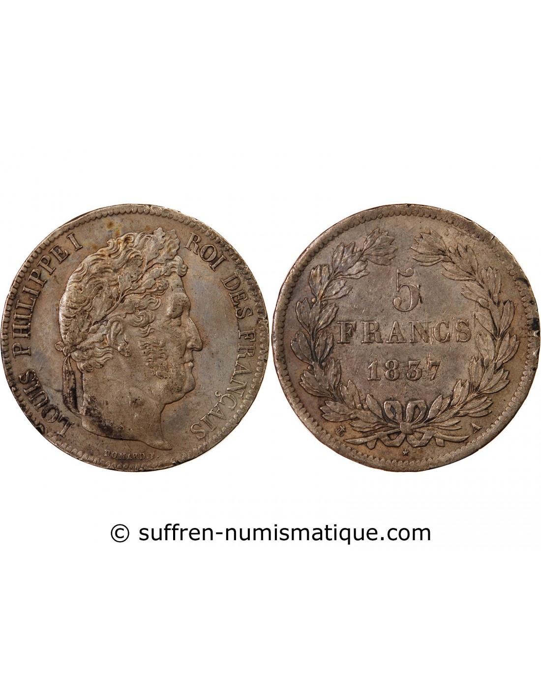 "France LOUIS PHILIPPE - 5 FRANCS ARGENT 1837 A PARIS "Type Domard, Tr relief"