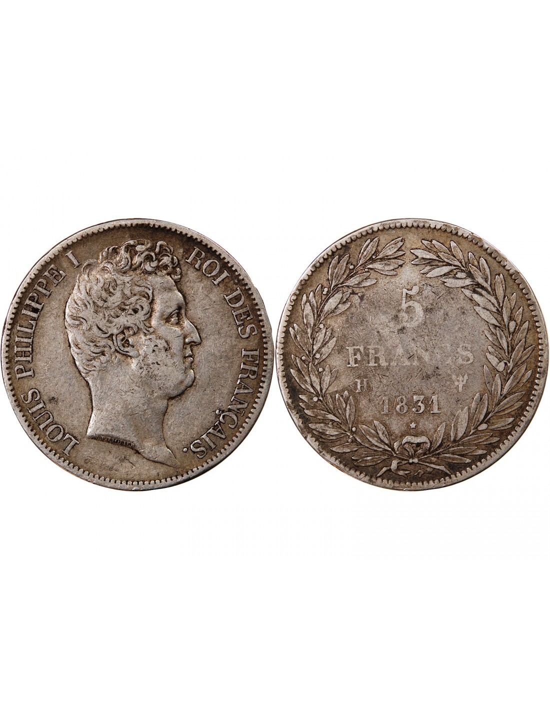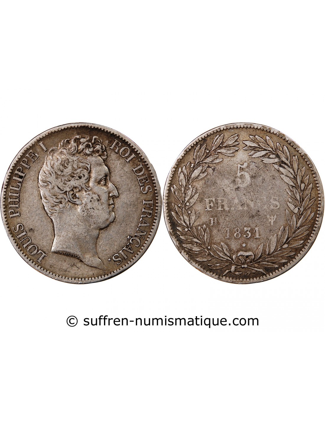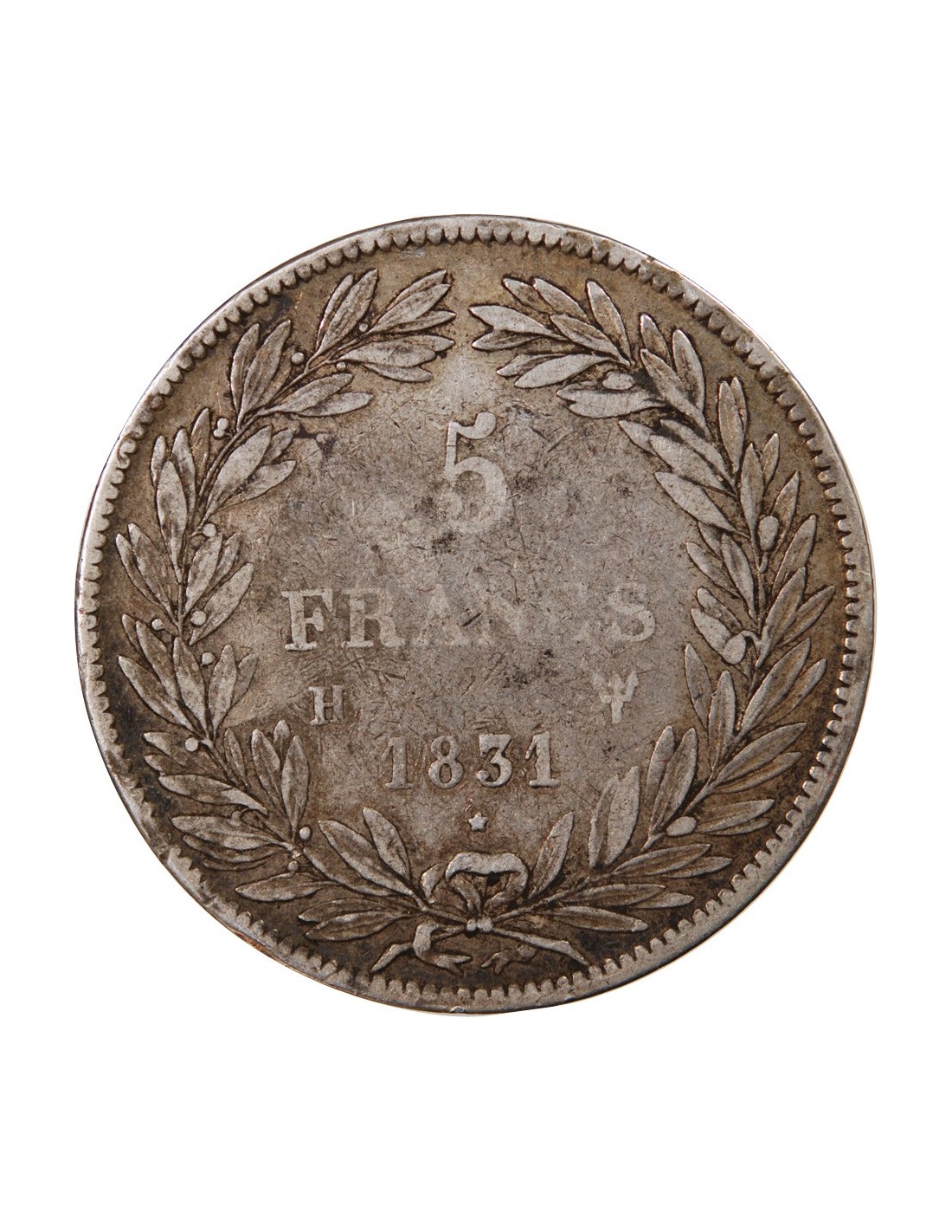 LOUIS PHILIPPE - 5 FRANCS 1831 H LA ROCHELLE "Tranche en creux"