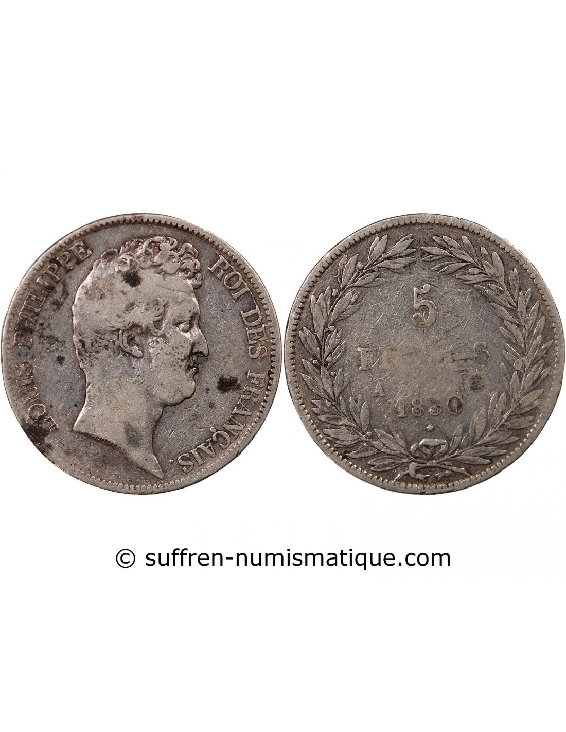 "France Louis Philippe Ier - 5 Francs Argent, Sans Le I, Tr Creux - 1830 A Paris