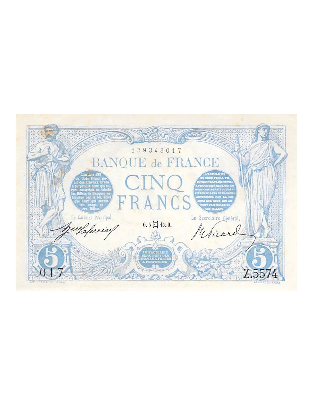 FRANCE - 5 FRANCS BLEU 12/08/1915 - TB+