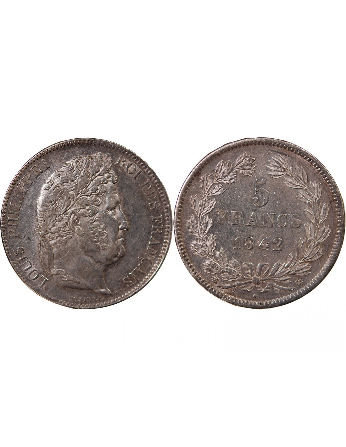 "France LOUIS PHILIPPE - 5 FRANCS ARGENT 1842 BB STRASBOURG "Type Domard, Tr relief"
