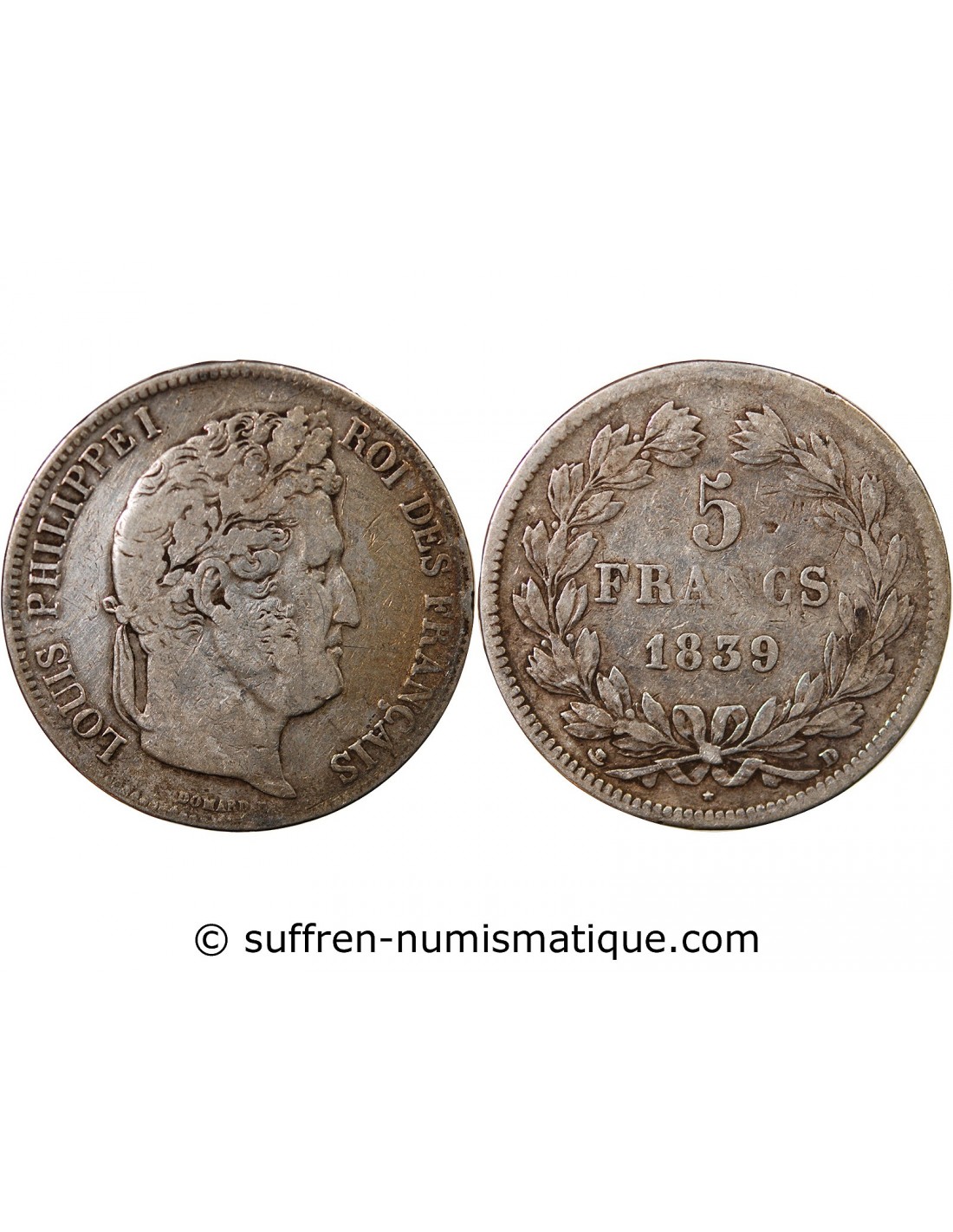 France Louis Philippe 5 Francs 1839 D Lyon "Arche De Noé"