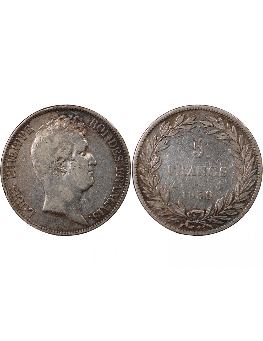 "France LOUIS-PHILIPPE - 5 FRANCS ARGENT 1830 A PARIS "Type Tiolier sans le I, Tr relief"
