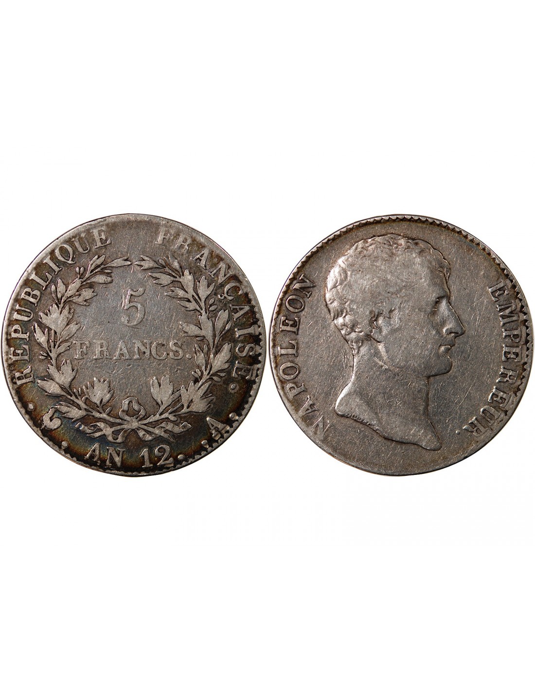 France Napoléon Ier - 5 Francs Argent, République - An 12 A Paris