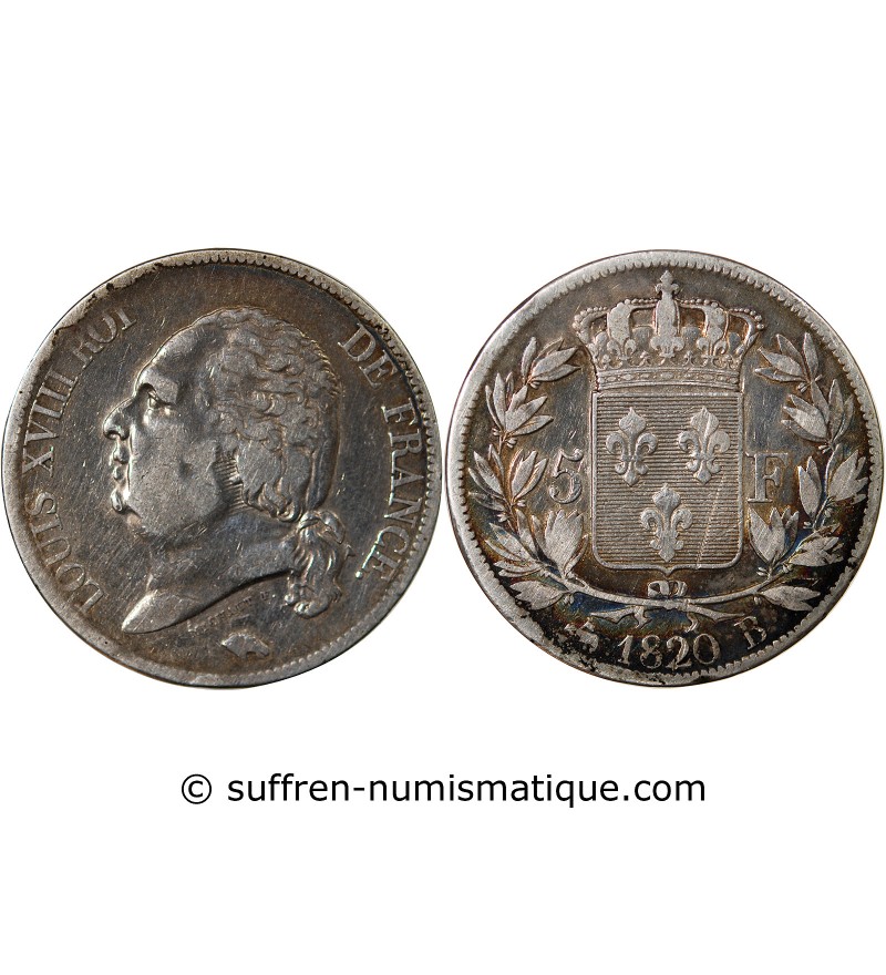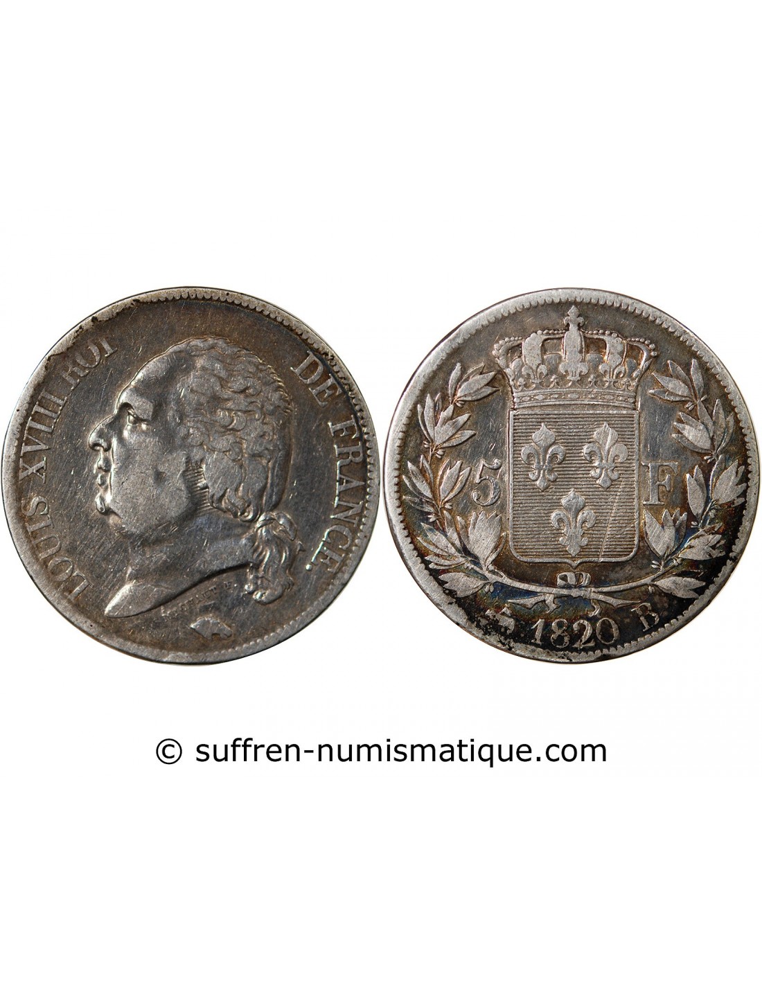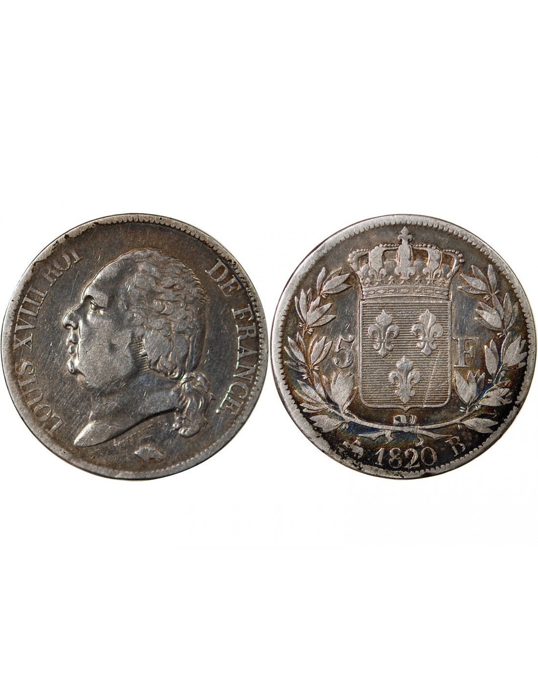 France Louis XVIII - 5 Francs Argent 1820 B Rouen