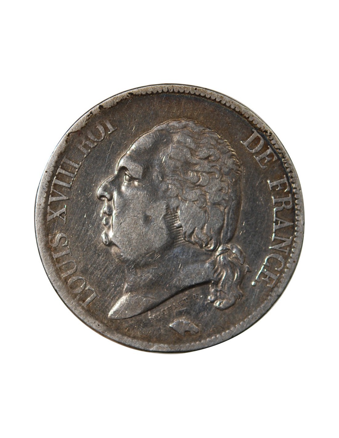 LOUIS XVIII - 5 FRANCS ARGENT 1824 B ROUEN