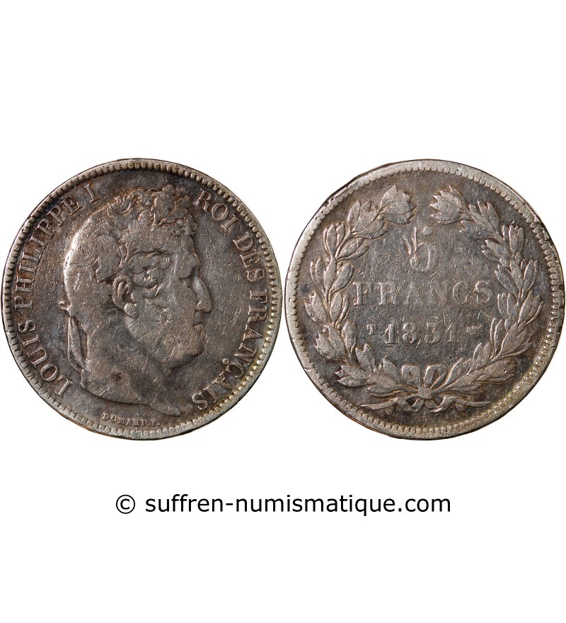 LOUIS PHILIPPE - 5 FRANCS ARGENT 1831 T NANTES "Type Domard, Tr relief"