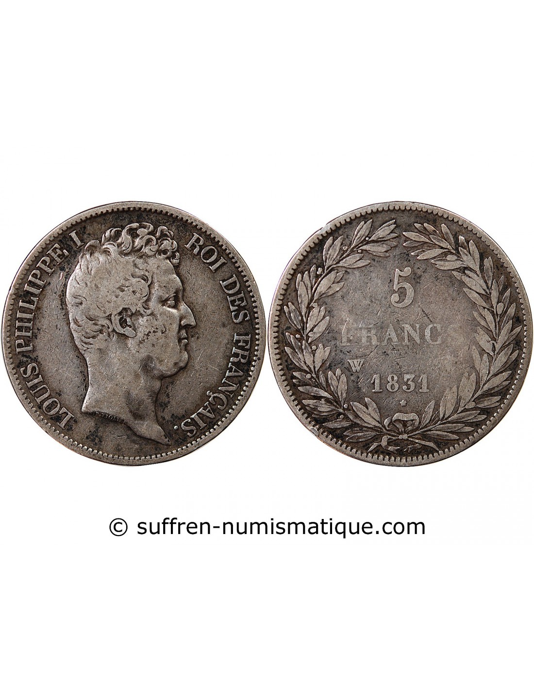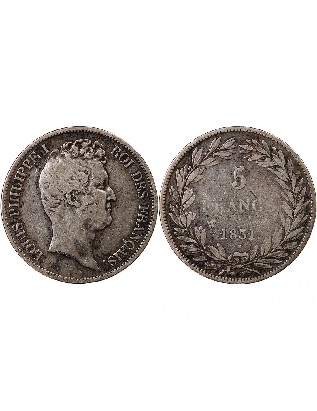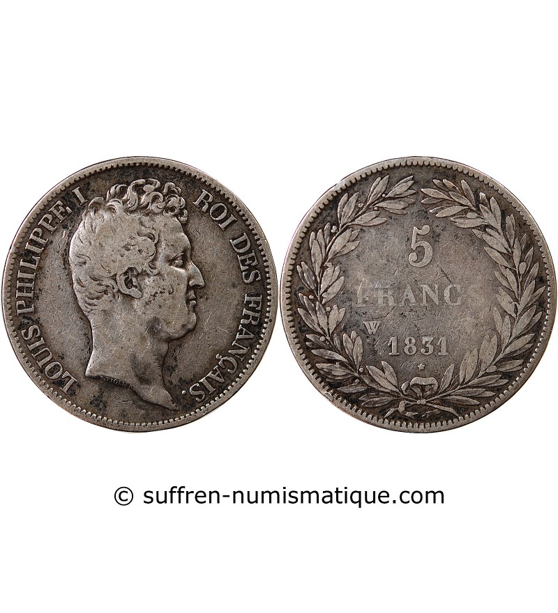 LOUIS PHILIPPE - 5 FRANCS ARGENT 1831 W LILLE "Type Tiolier, Tr creux"