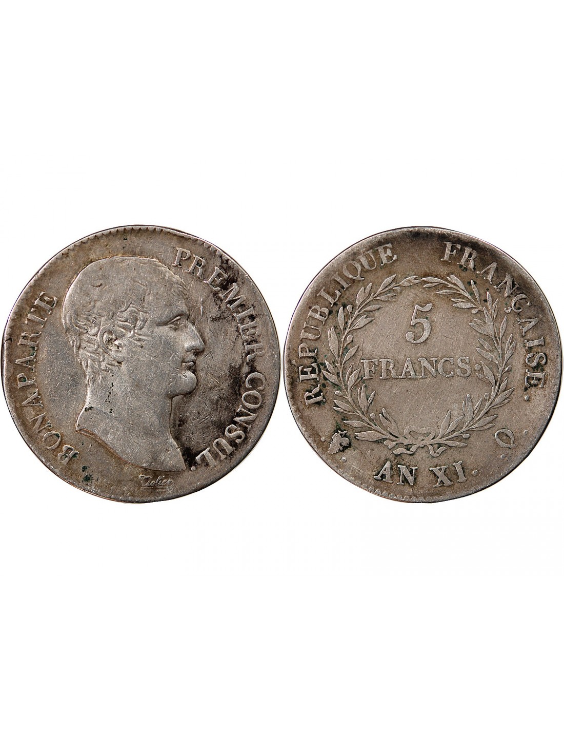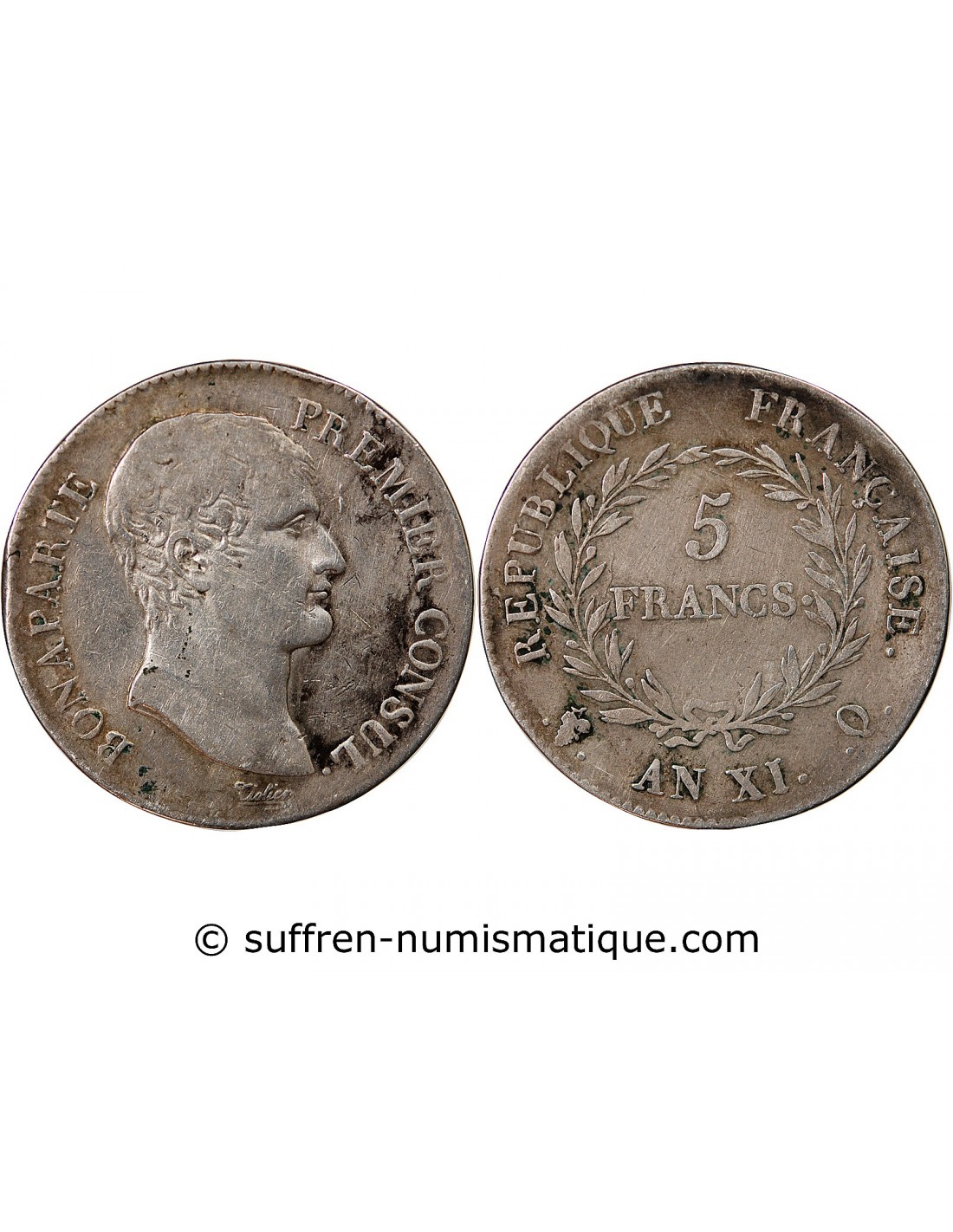 BONAPARTE Ier CONSUL - 5 FRANCS ARGENT AN XI Q PERPIGNAN