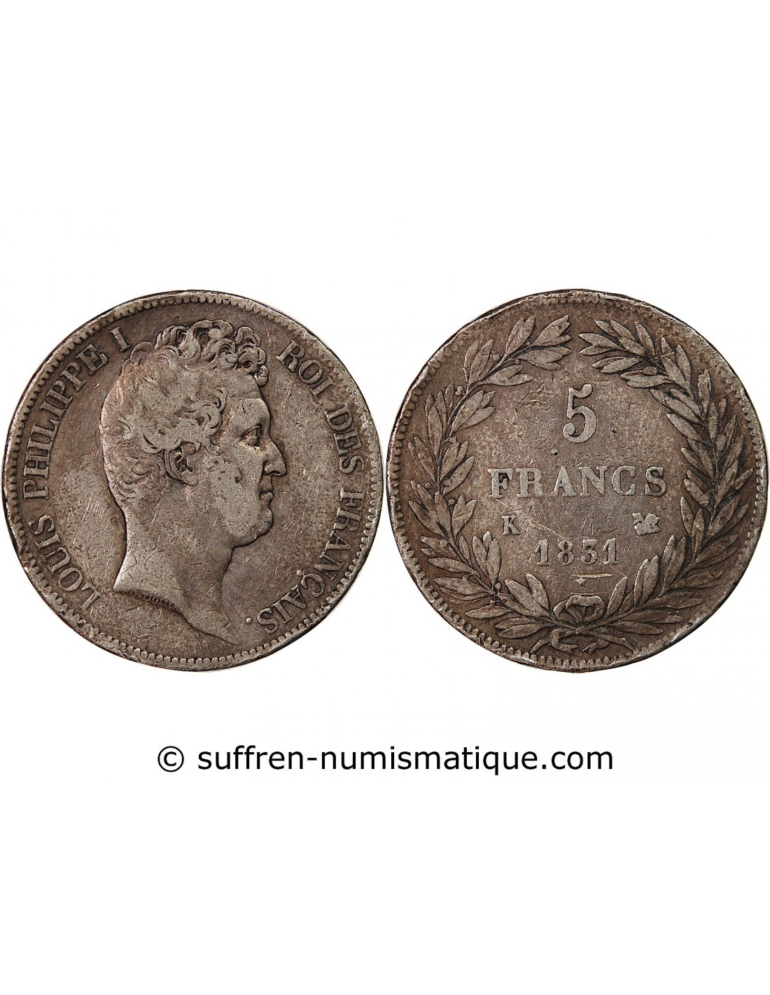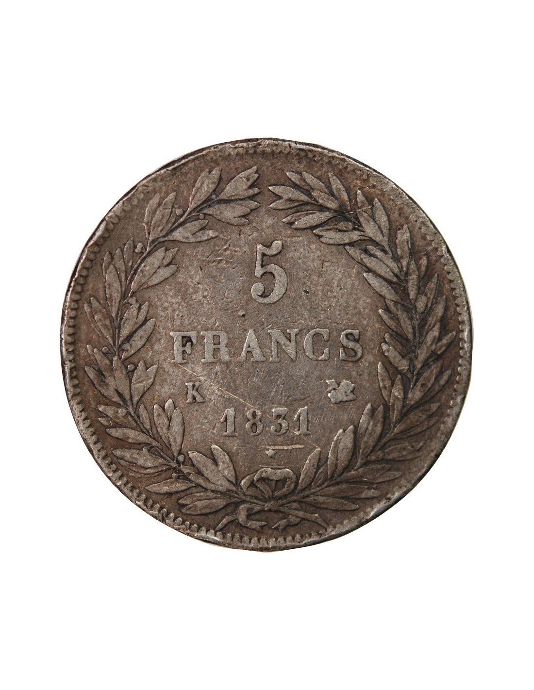 LOUIS PHILIPPE - 5 FRANCS 1831 K BORDEAUX "Type Tiolier, Tr Creux"