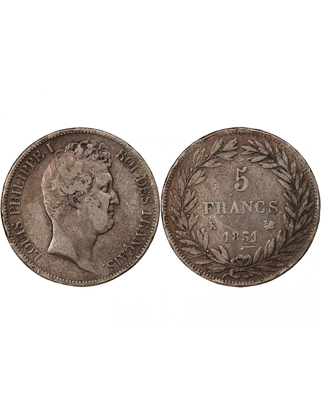 "France Louis Philippe Ier - 5 Francs 1831 K Bordeaux "Type Tiolier, Tr Creux"