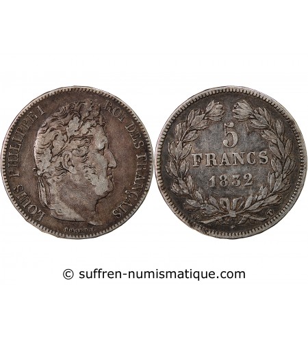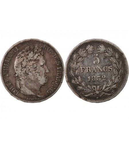 LOUIS PHILIPPE - 5 FRANCS ARGENT 1832 T NANTES