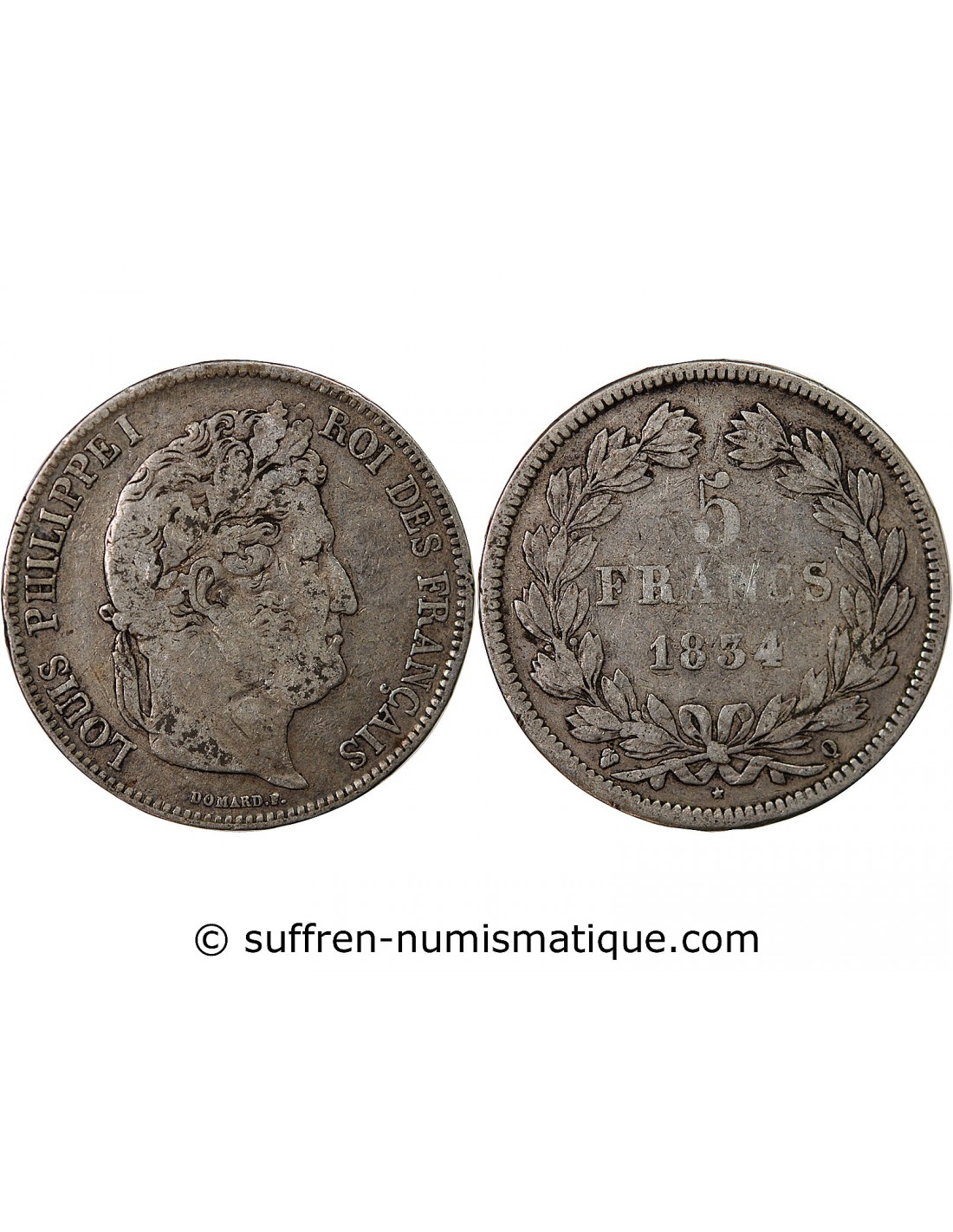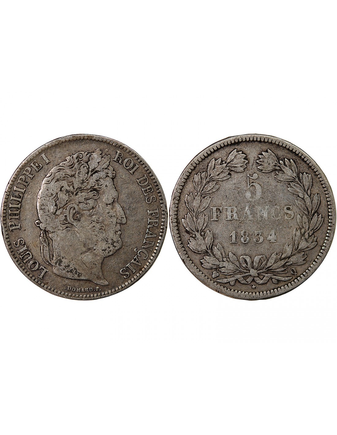 France Louis Philippe Ier - 5 Francs Argent 1834 Q Perpignan