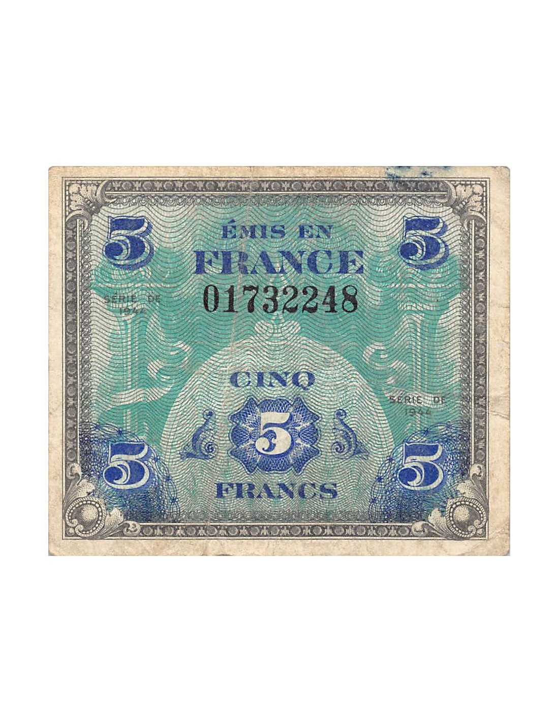Vendu 5 Francs France IMPRESSION AMERICAINE - 5 FRANCS DRAPEAU Type 1944 - TB SUFFREN sf_19190 5,00 € épinglages, plis, salissures View