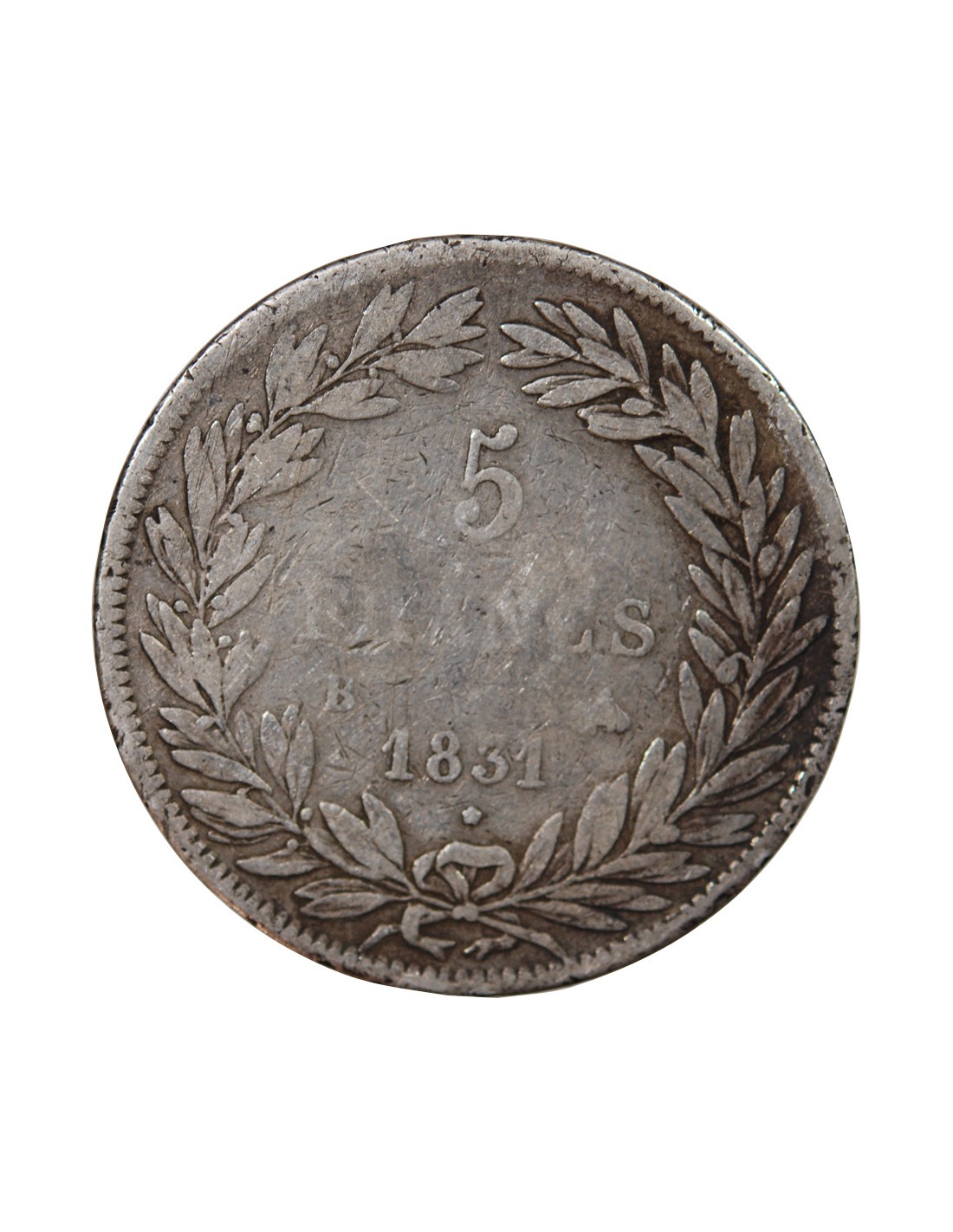 LOUIS PHILIPPE - 5 FRANCS ARGENT 1831 B ROUEN "Type Tiolier, Tr creux"