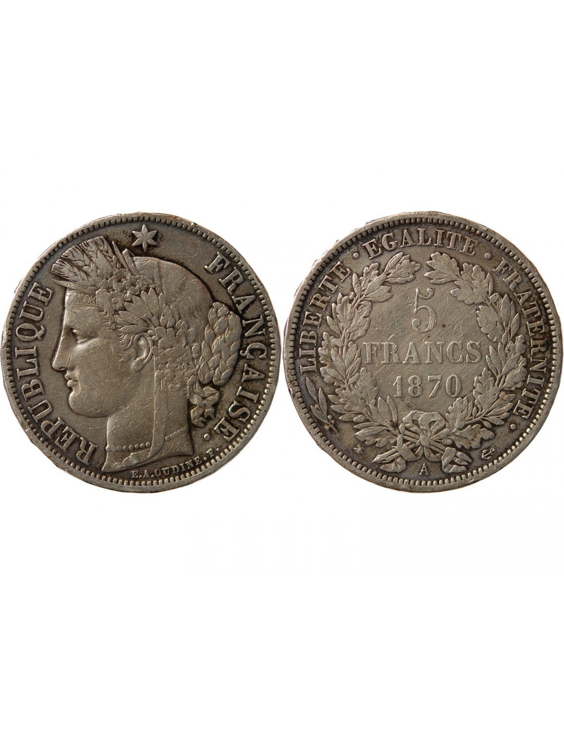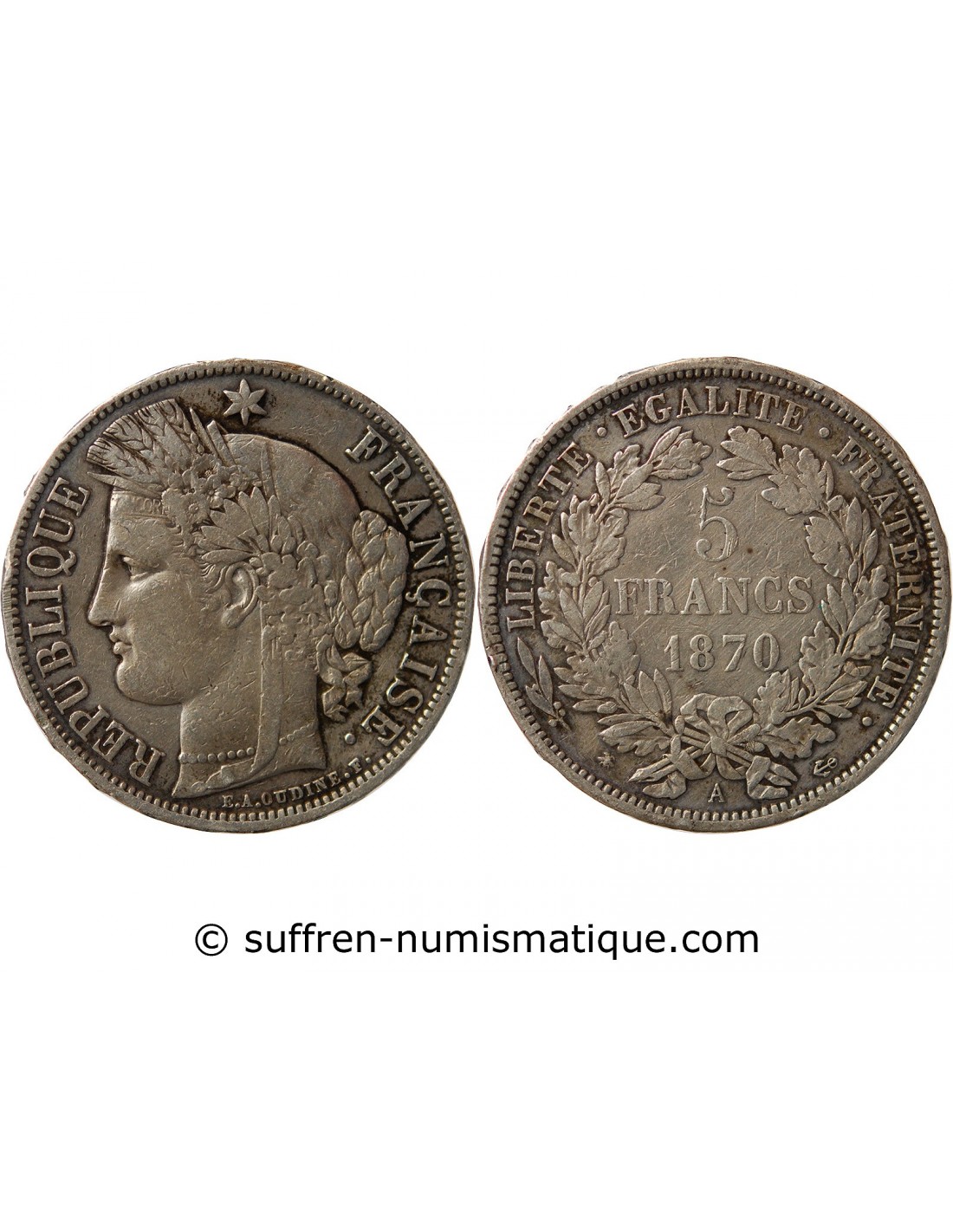 5 FRANCS ARGENT CERES AVEC LEGENDE 1870 A PARIS