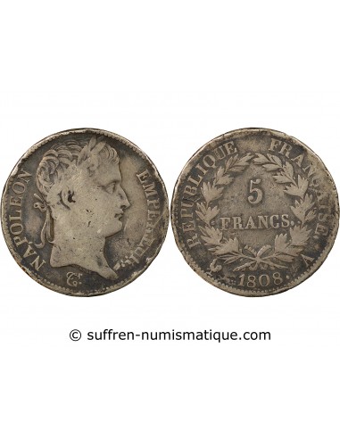 REPUBLIQUE, NAPOLEON Ier - 5 FRANCS ARGENT, REPUBLIQUE - 1808, A PARIS