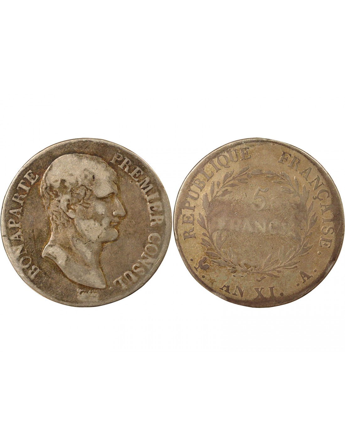 France Bonaparte Ier Consul - 5 Francs Argent - An XI A Paris