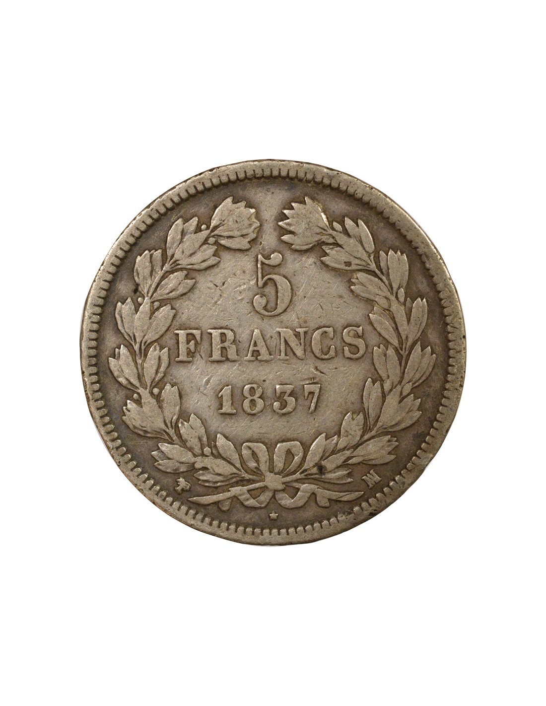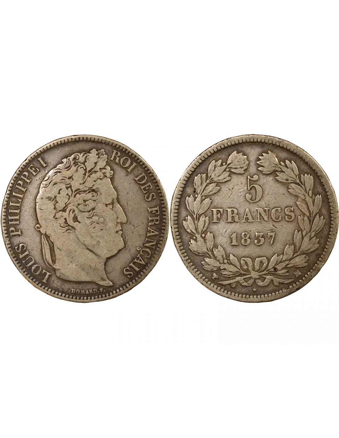 France Louis Philippe I - 5 Francs Argent, Tr. en relief - 1837 MA Marseille